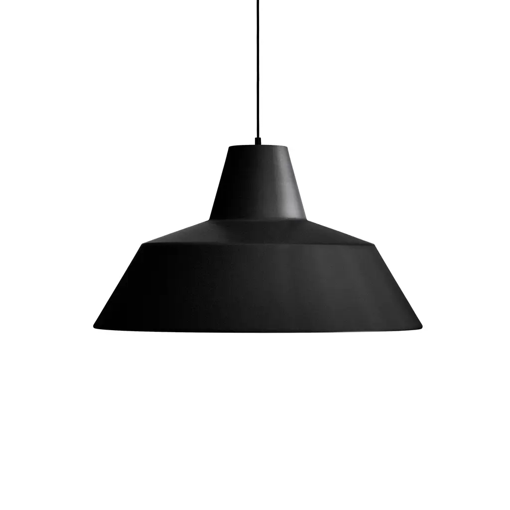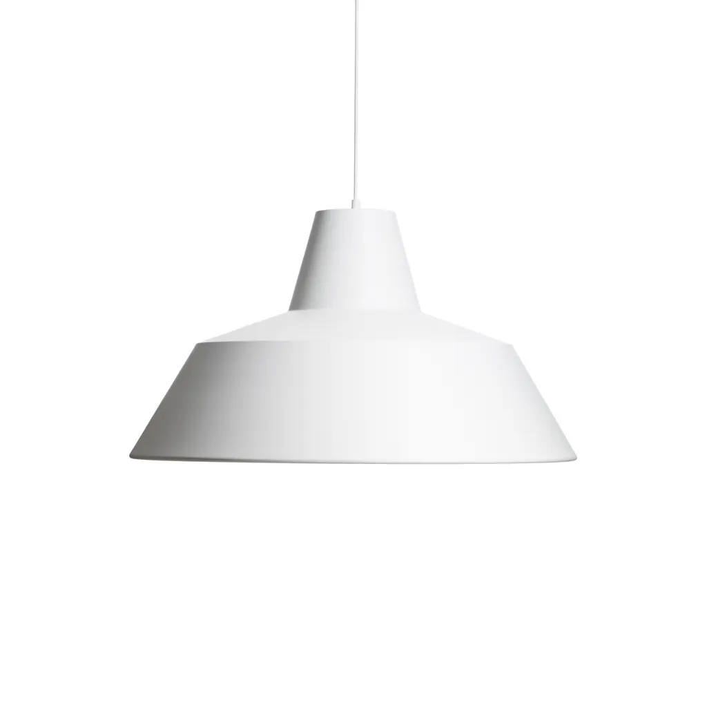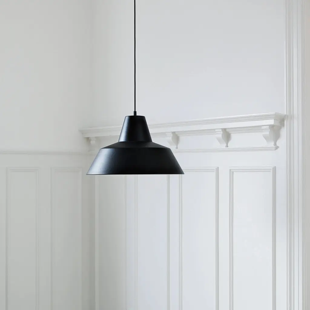 Originally made in 1951 for industrial workshops, this lamp is a classic of Danish design. Designer A. Wedel-Madsen created the pendant light with a blend of angular and rounded forms. The wide opening of the shade maximizes brightness, illuminating workspaces, public areas, and homes. While it originally featured a heavy iron build, the Made by Hand Workshop W5 Pendant Lamp now comes with a lightweight spun aluminum or copper shade with a durable finish. A removable diffuser softens the light and minimizes glare at the same time. Keeping true to the brand’s dedication to Danish craft traditions, the Workshop lamp series is handmade by experienced craftspeople. This pendant lamp comes with a fabric-covered cord and suits indoor use only. The largest of the series, the Workshop W5 lamp is available in different colors.