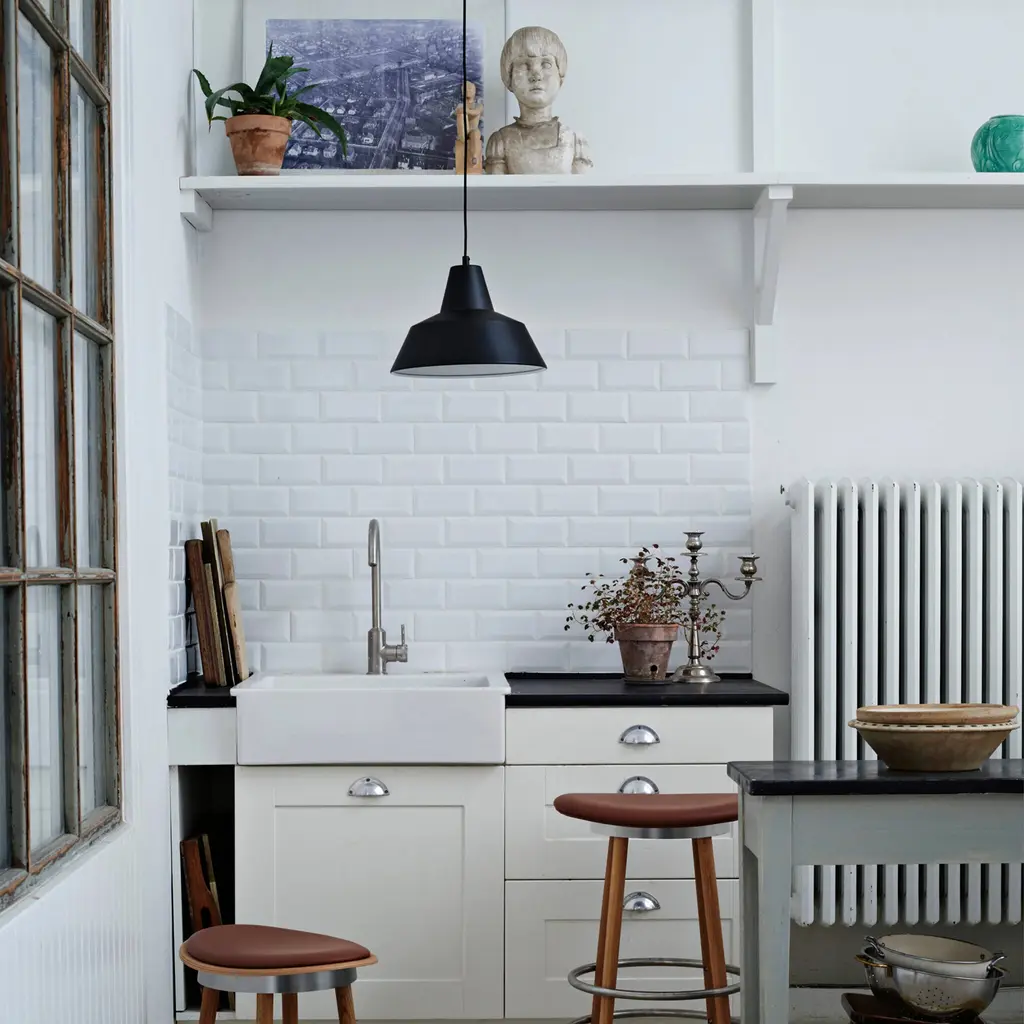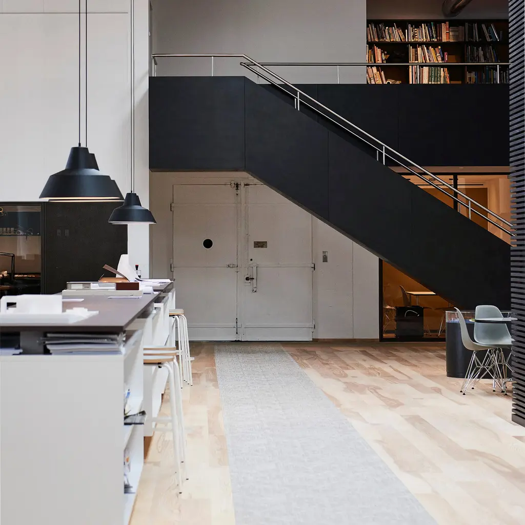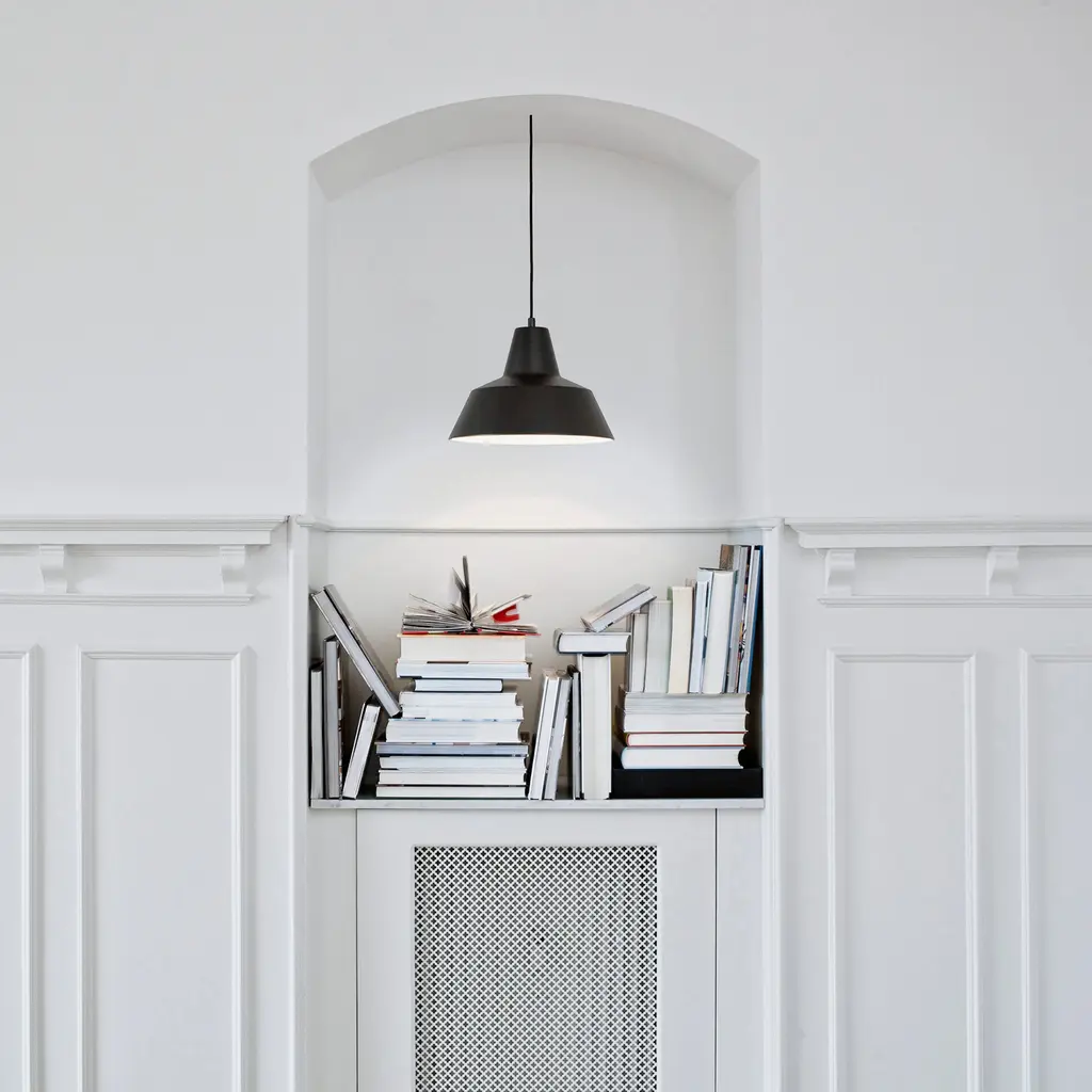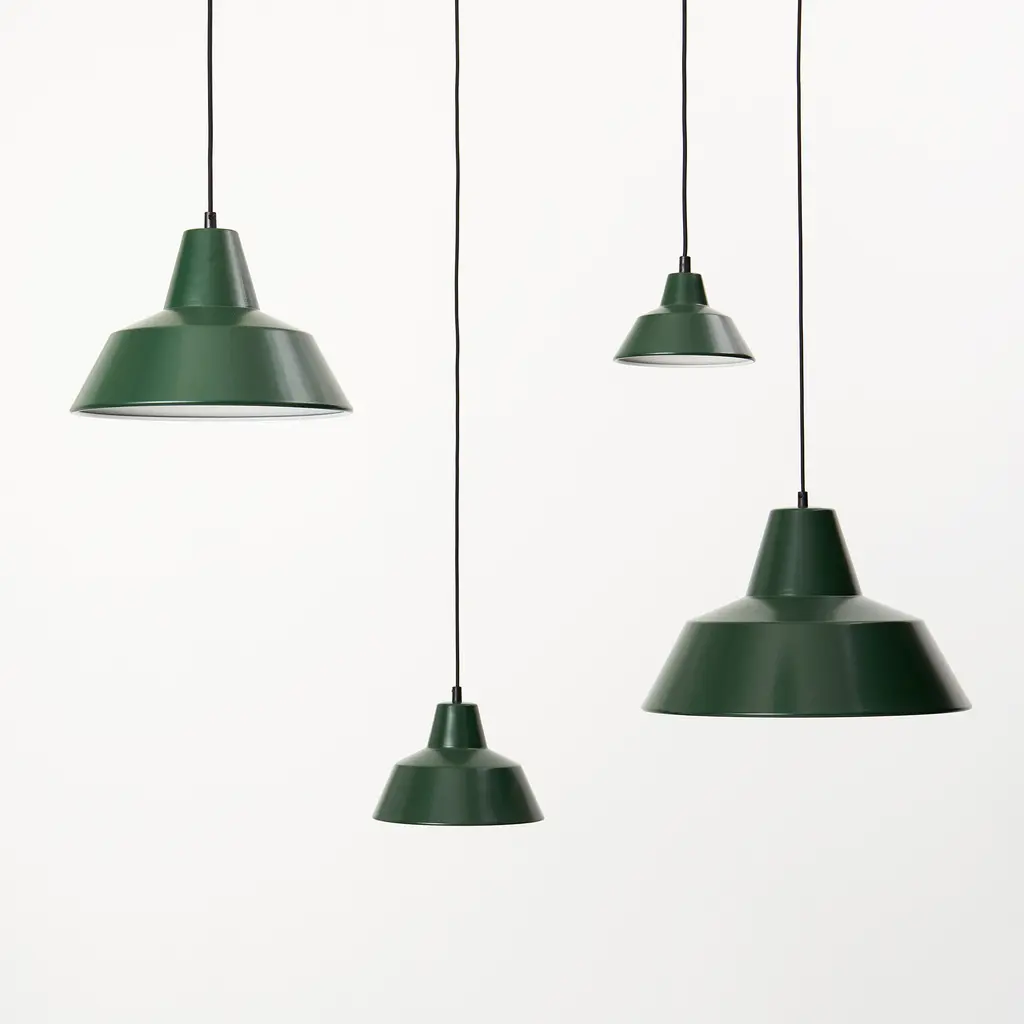 Originally made in 1951 for industrial workshops, this lamp is a classic of Danish design. Designer A. Wedel-Madsen created the pendant light with a blend of angular and rounded forms. The wide opening of the shade maximizes brightness, illuminating workspaces, public areas, and homes. While it originally featured a heavy iron build, the Made by Hand Workshop W5 Pendant Lamp now comes with a lightweight spun aluminum or copper shade with a durable finish. A removable diffuser softens the light and minimizes glare at the same time. Keeping true to the brand’s dedication to Danish craft traditions, the Workshop lamp series is handmade by experienced craftspeople. This pendant lamp comes with a fabric-covered cord and suits indoor use only. The largest of the series, the Workshop W5 lamp is available in different colors.