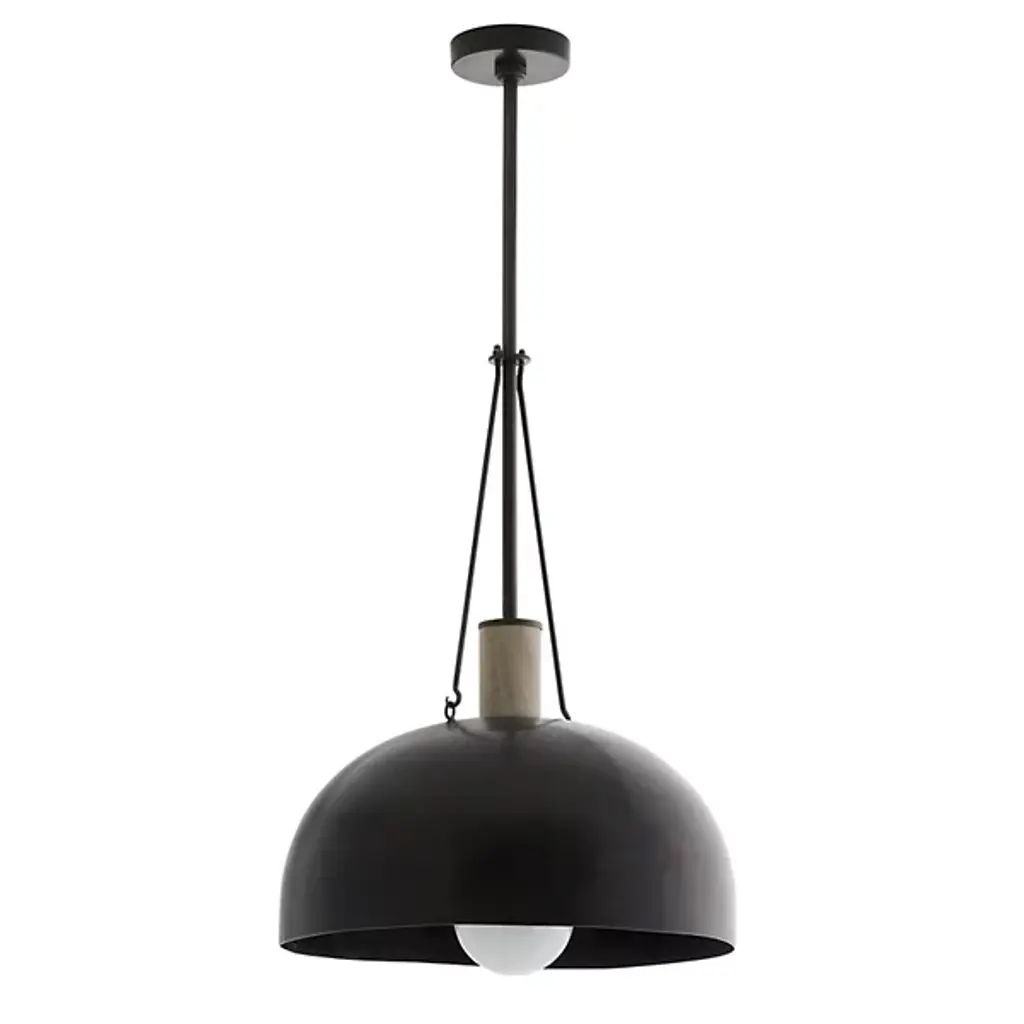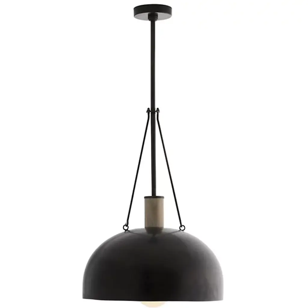 Influenced by a blend of mid-century modern and industrial aesthetics, the transitional Madea Pendant is presented by Arteriors, a brand that responsibly curates pieces that harmoniously blend the line between fine art and interior design. Finished in a handsome bronze, the curved shade is attached to an adjustable down rod and other mindful details. It’s minimal enough in look to fit into an array of interiors as well as covered outdoor locales.