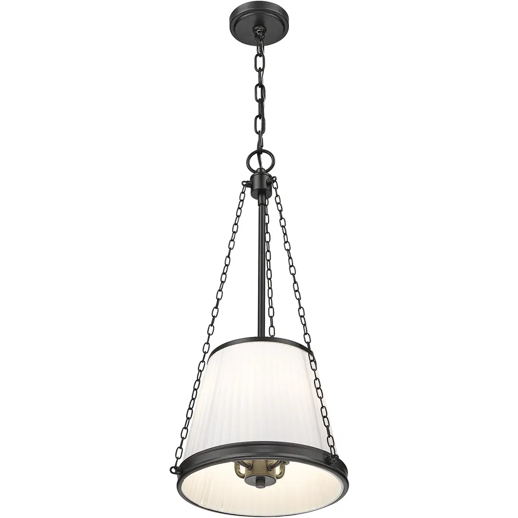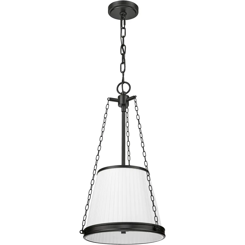 Charming chains add ornamental delicacy to this modern four-light pendant. A matte black finish creates contrast, especially against its pleated linen shade, which diffuses light for an inviting look and feel. Add this pendant to a powder room or in multiples over a kitchen island.