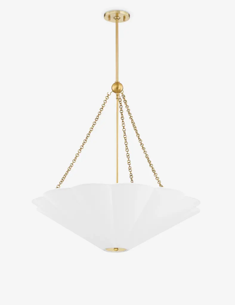 The Madeline LED Pendant from Mitzi illuminates your space with a touch of elegance. The curved shade offers a light and airy aesthetic, while the pendant is secured by an elegant chain of links that adds to its charm. With a basin-shaped frame crafted from steel, this pendant exudes modern sophistication. The shade, made from linen, adds a subtle textural element to the design. With integrated LED technology, Madeline not only showcases style but also offers efficient lighting