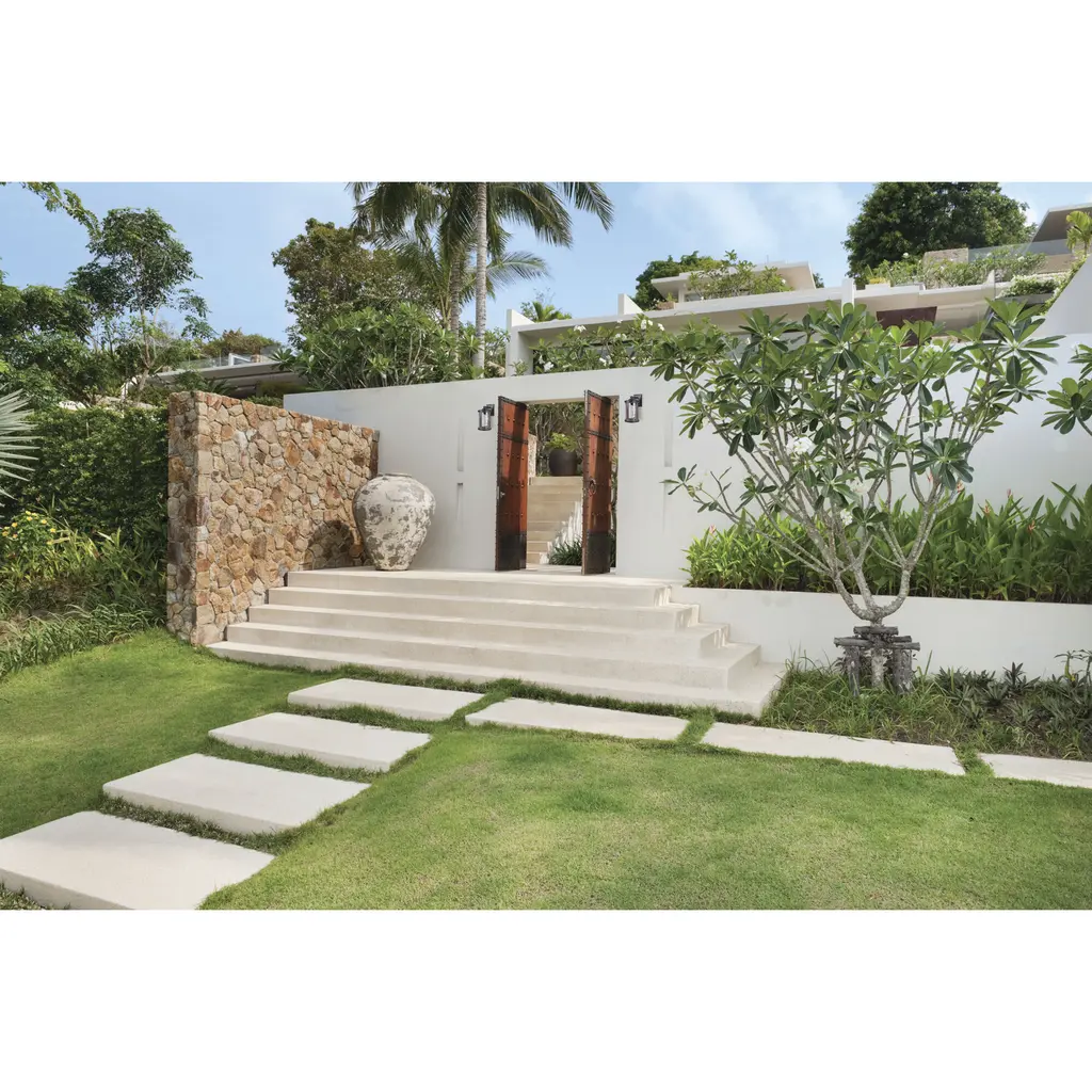 The simple detail in our Spanish-inspired Madera collection brings old world charm into contemporary living. The clear, hamered glass mimics the warm flicker of candlelight to softly illuminate your walkway. The black iron and wood finish set against the textured glass is as rustic as it is regal.