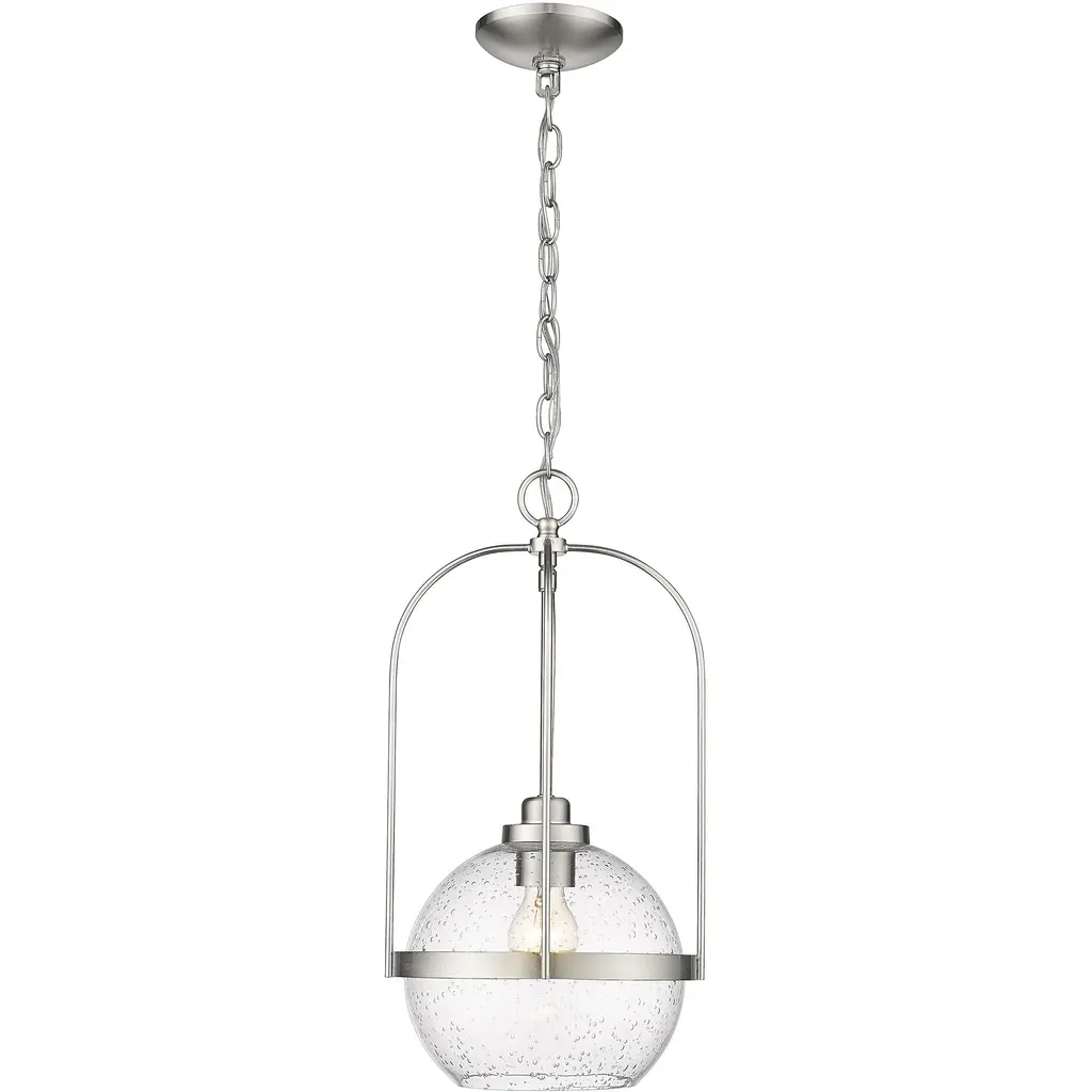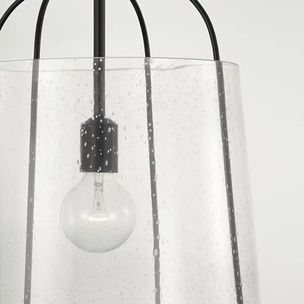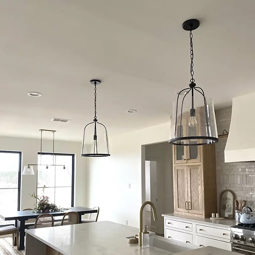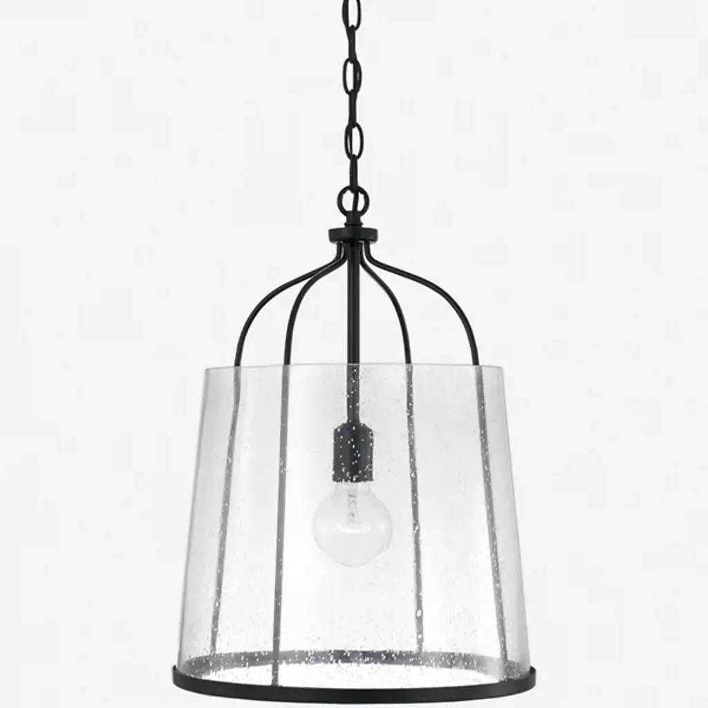 Give your home a chic aesthetic with the Madison Pendant by Capital Lighting. A chain of links attaches to a canopy at your ceiling, allowing a halogen bulb to suspend effortlessly in the air. Your fixture’s fine metalwork elegantly loops around this bulb and fits within a cylindrical shade of glass. From behind this glass, luminous light splays throughout your room, bringing visibility to your surroundings. This hanging furnishment is suited for living room placement and situations above dinner tables.