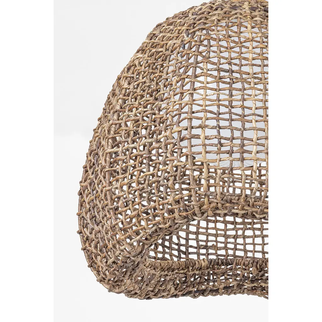 Playing with translucency and a loose natural weave, Maester mixes maritime and organic influences. Resembling an antique buoy wrapped in a net, a large Opal Shiny glass shade is nested into a woven abaca exterior. Available in two distinctive shapes, Maester is finished with a simple Vintage Gold Leaf chain that echoes the weave of the shade.*Due to the one-of-a-kind nature of the medium, exact colors and patterns may vary slightly from the image shown.