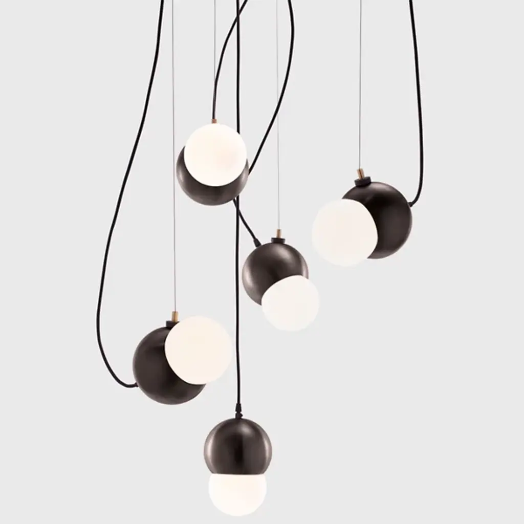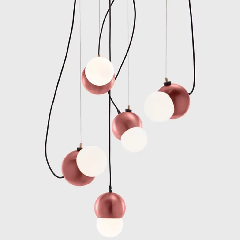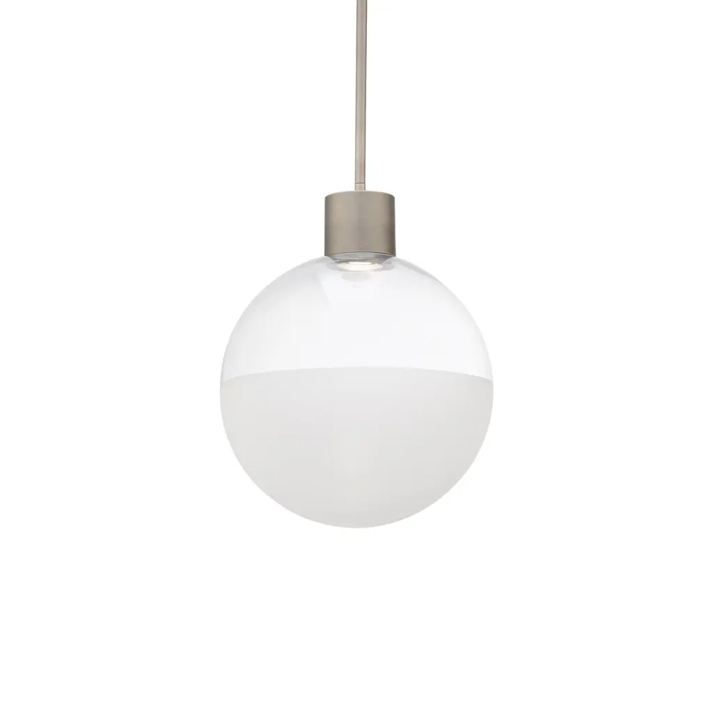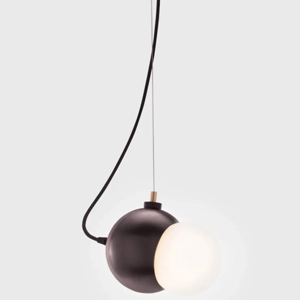 The Maggie LED Pendant Light was designed by Brooks Alexander Munroe. This two-toned suspension light features a spun steel globed with a plated finish and white opal glass insert. With a magnet attachment that serves as both a support cable and way to change the orientation of the pendant light, this fixture can be rotated to fit a wide array of decorative lighting needs. Adds soft, diffused illumination making it a fantastic choice for modern spaces. Available in Silver, Smoke, Copper, Gold, Hairline Bronze and Dark Bronze. Includes matching metal canopy and black cloth cord. Shown in Copper. Note: Available in custom multipoint clusters, please call (866) 428-9289 to place order.