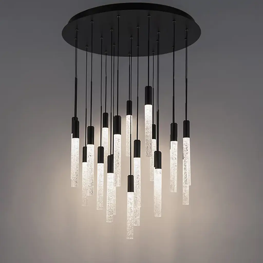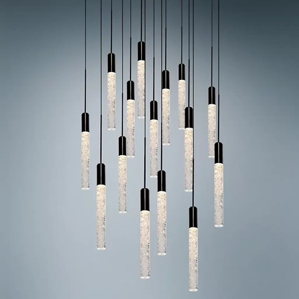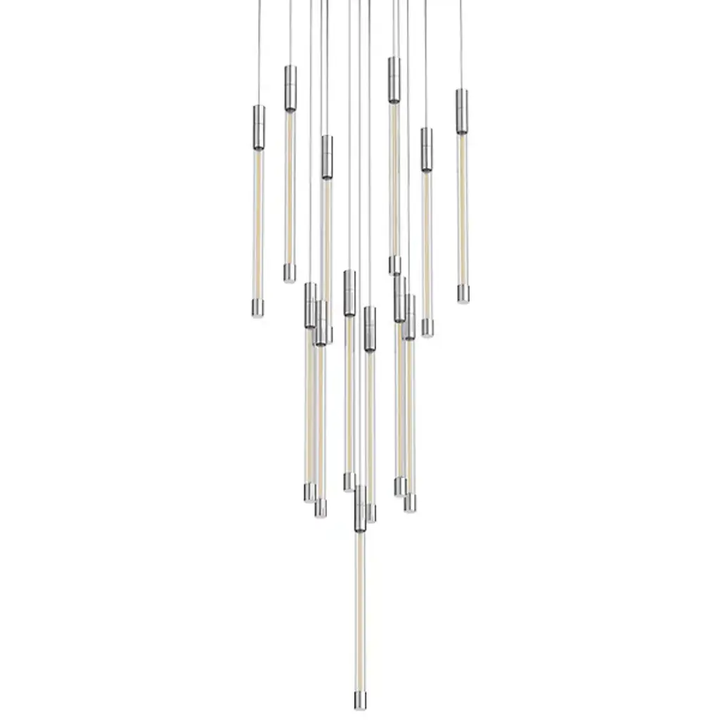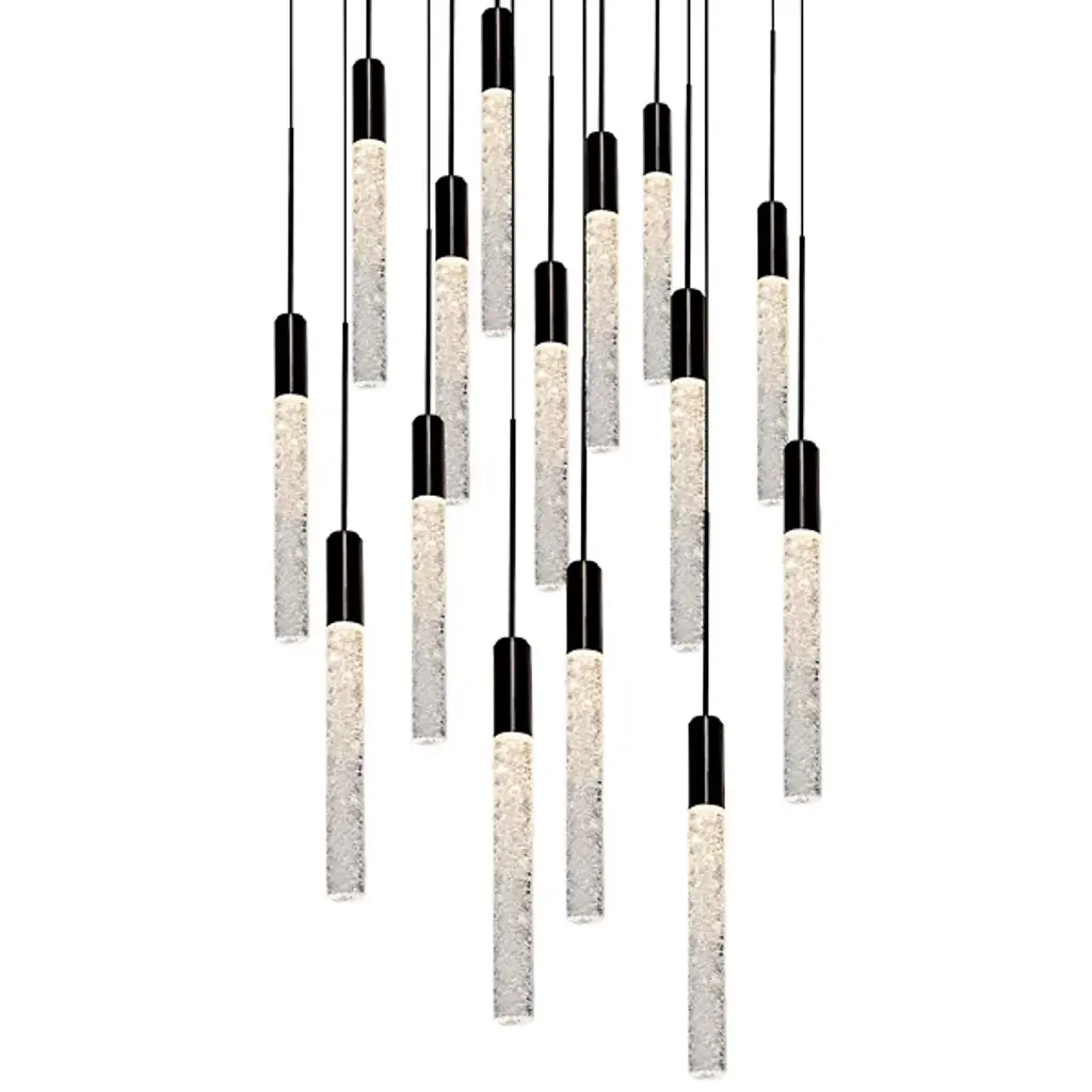 Add a brilliant accompaniment to your ceilings with the Magic LED Large Multi-Light Pendant by Modern Forms. A contemporary fixture suitable for a variety of indoor environments, it starts by suspending slim cables from a broad circular canopy of aluminum, sending down a shower of evenly spaced LEDs set into cylindrical housings. Each small lamp is capped by Piastra crystal and hangs down at different heights, brightening their surroundings like a brilliant shower of luminescent raindrops.