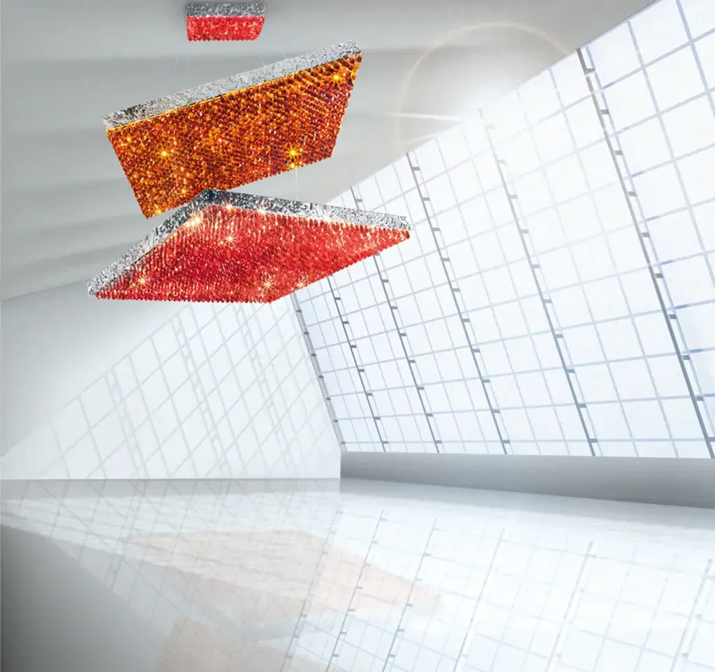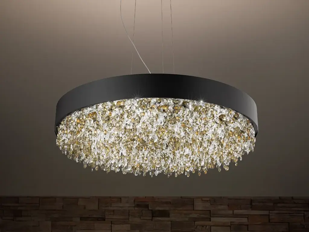 Light source: 72 x G9 halogen energy saving - 72 x G9 LED bulbs.A sculpture of light that captures the strength and warmth of Nature: Magma is the new Patrizia Volpato creation dedicated to rooms which have their distinct and unique style. It creates precious reflections of silver or gold with the sparkling facets of crystal. Total freedom of choice, Magma is available in the wall, ceiling or standard versions.Available finishes: Polished chrome, shiny 24 carat gold. Pendants color: Transparent, Amber, Amethyst, Red.
