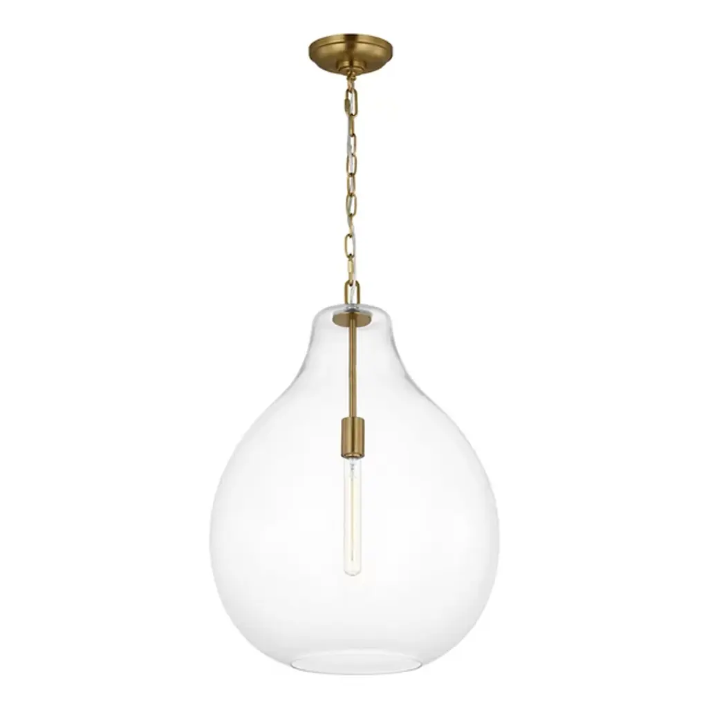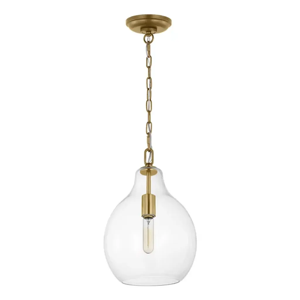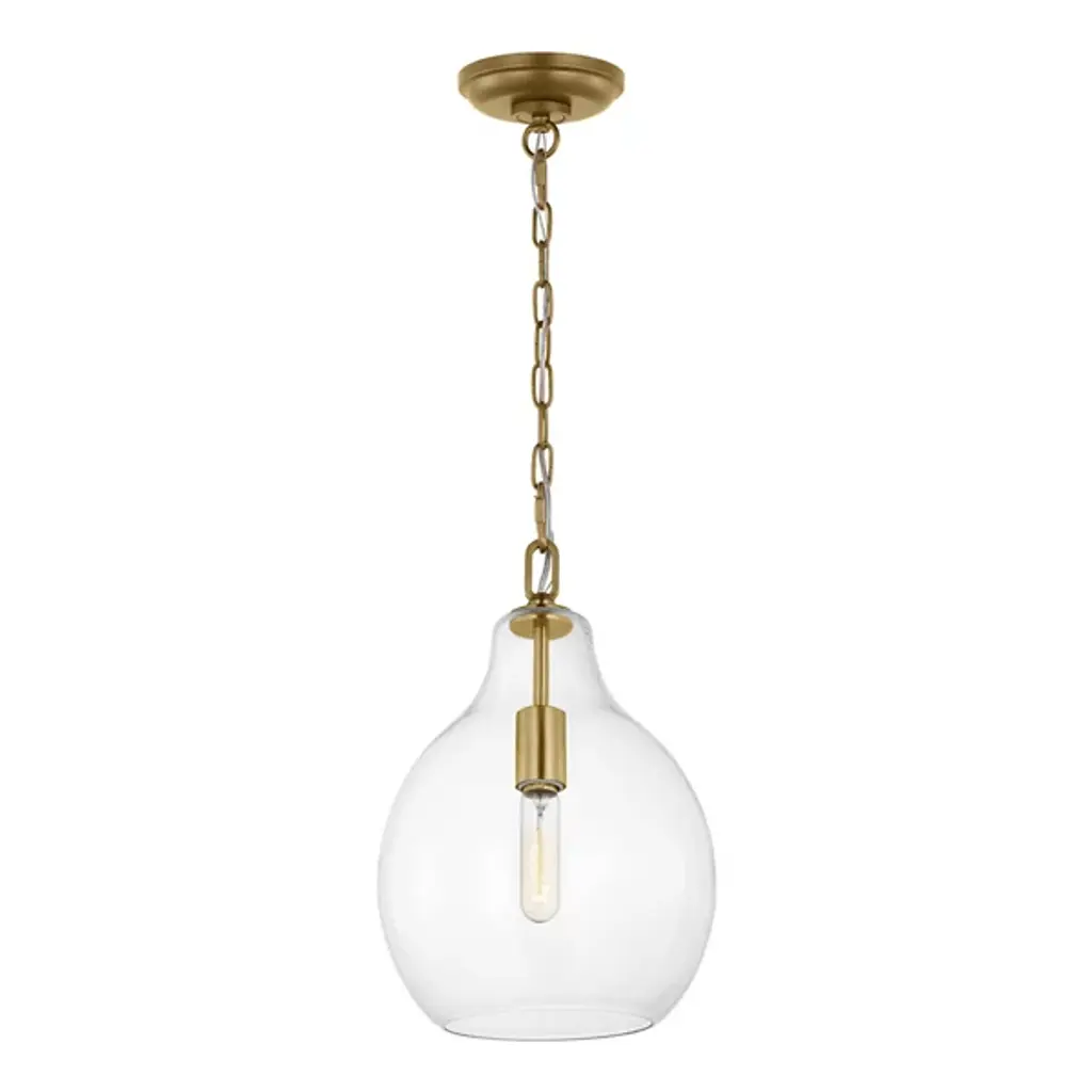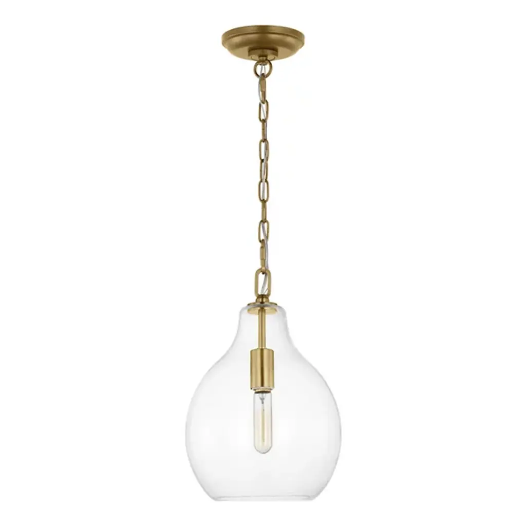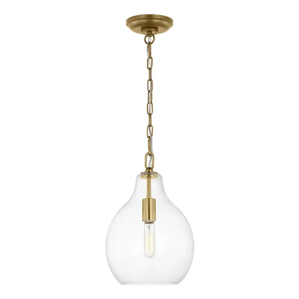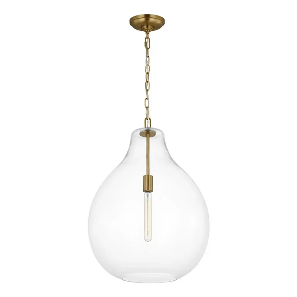 The Magnus Pendant from Visual Comfort Studio is designed by Ellen DeGeneres. It features a bulbously shaped glass shade open at the bottom, allowing the light from an LED to splay throughout your living space effortlessly. The LED is supported by steel and is secured to a ceiling canopy and a linked chain. Change the brightness level of this sloped-ceiling adaptable pendant using a separately sold ELV dimmer. Magnus infuses your décor with a contemporary touch.