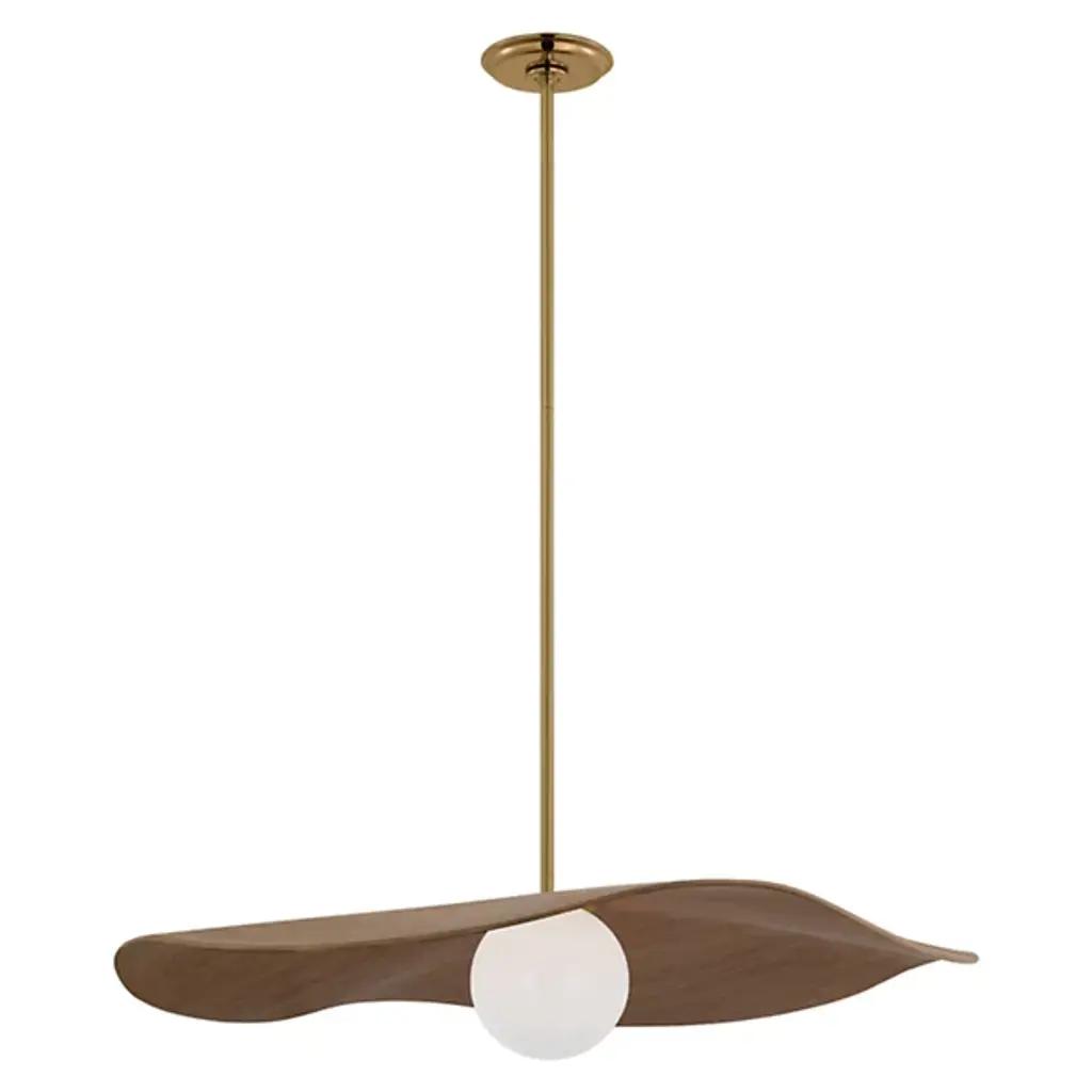 The Mahalo LED Pendant from Visual Comfort Signature is designed by Windsor Smith. Crafted with a combination of materials, including brass and wood, this pendant is chic and sophisticated. The shade of the Mahalo is crafted from white glass, emitting an inviting, integrated LED glow. With dimmable functionality, this pendant allows you to adjust the lighting intensity when used with a separately sold TRIAC Dimmer. Sloped-ceiling adaptable, Mahalo is versatile and can be installed in a variety of settings.