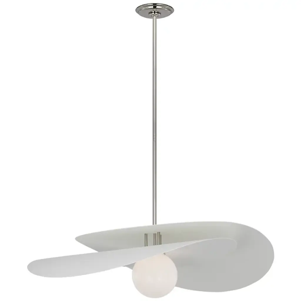 The Mahalo Tiered LED Pendant from Visual Comfort Signature is designed by Windsor Smith. Crafted with care and attention to detail, this pendant features a globe-shaped shade made of white glass, creating a soft and diffused illumination. Mahalo Pendant has dimmable functionality, allowing you to adjust the brightness when using a separately sold TRIAC dimmer. This sloped ceiling adaptable pendant offers versatility in installation. It is illuminated by an integrated LED.