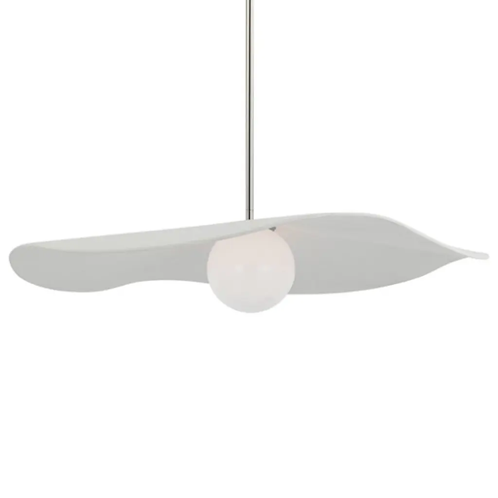The Mahalo Tiered LED Pendant from Visual Comfort Signature is designed by Windsor Smith. Crafted with care and attention to detail, this pendant features a globe-shaped shade made of white glass, creating a soft and diffused illumination. Mahalo Pendant has dimmable functionality, allowing you to adjust the brightness when using a separately sold TRIAC dimmer. This sloped ceiling adaptable pendant offers versatility in installation. It is illuminated by an integrated LED.