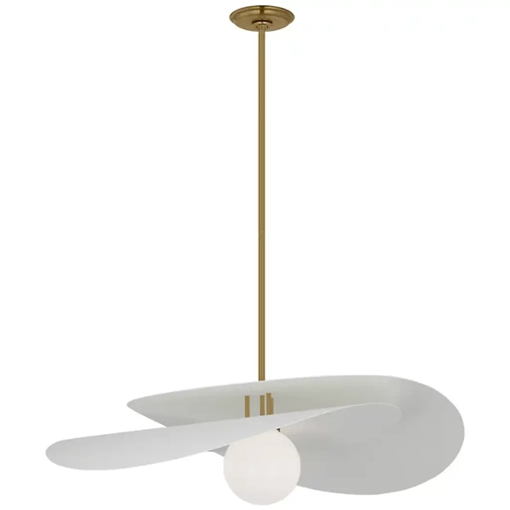The Mahalo Tiered LED Pendant from Visual Comfort Signature is designed by Windsor Smith. Crafted with care and attention to detail, this pendant features a globe-shaped shade made of white glass, creating a soft and diffused illumination. Mahalo Pendant has dimmable functionality, allowing you to adjust the brightness when using a separately sold TRIAC dimmer. This sloped ceiling adaptable pendant offers versatility in installation. It is illuminated by an integrated LED.