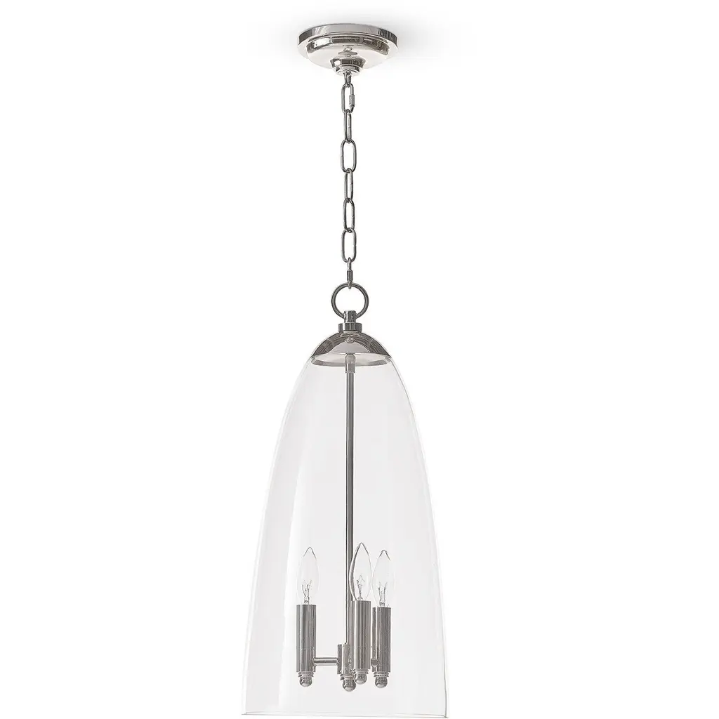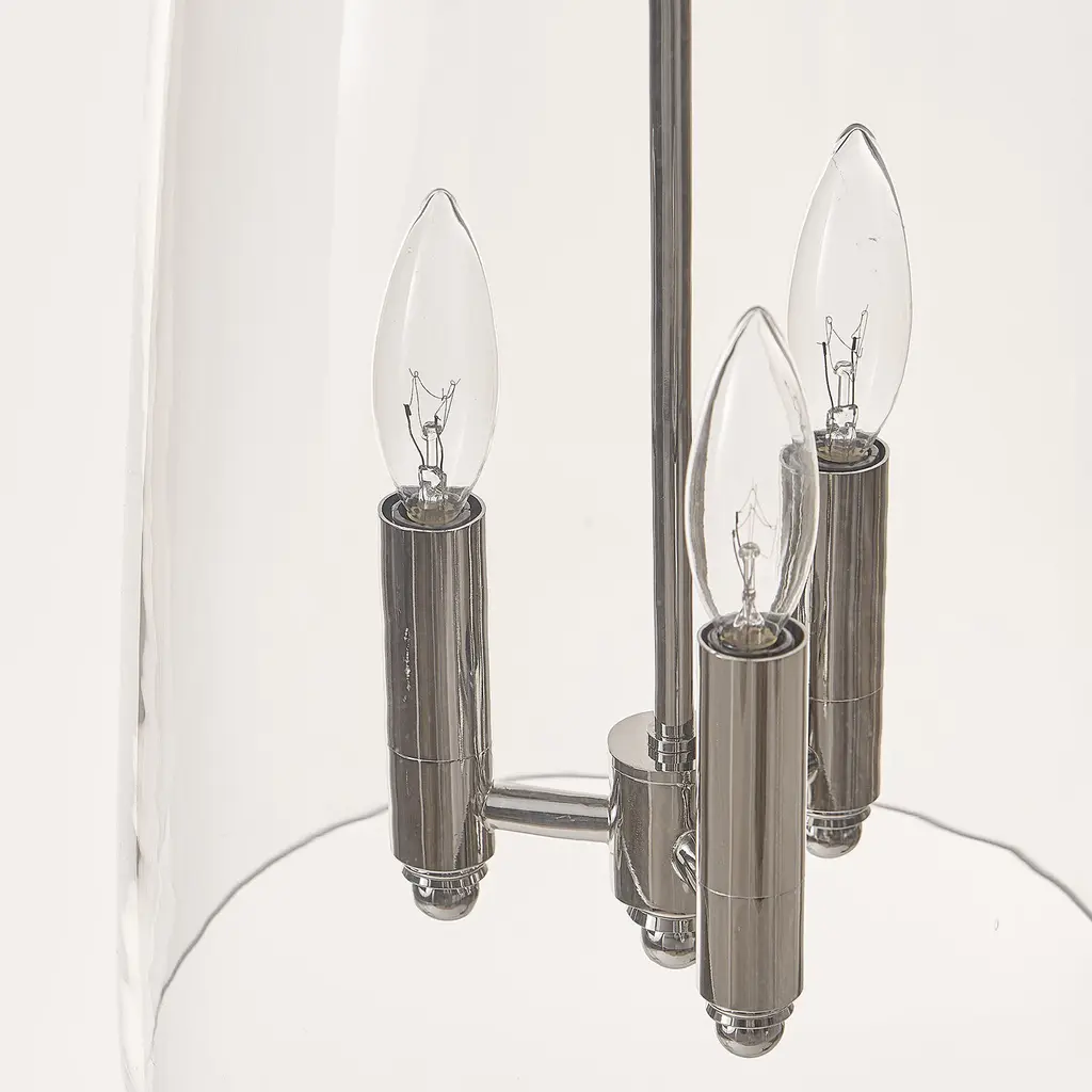 Taking a cue from fashion's most flattering fit, the Maiden Glass Pendant features a classic A-line silhouette draped over a candelabra cluster. Nothing gets between light and space with this transparent beauty. You can almost imagine it twirling in the air and dressing up a graceful hallway, entryway or kitchen island.