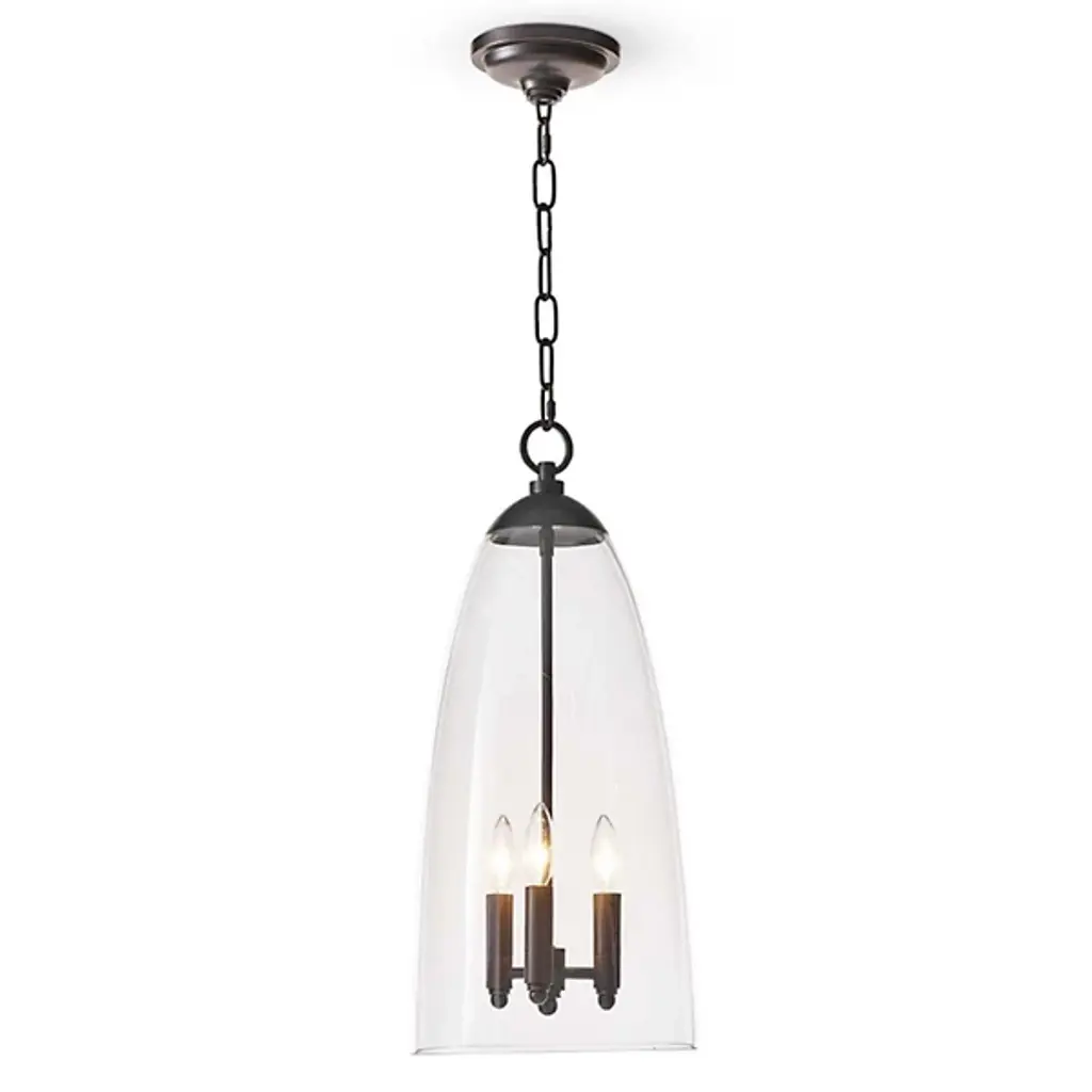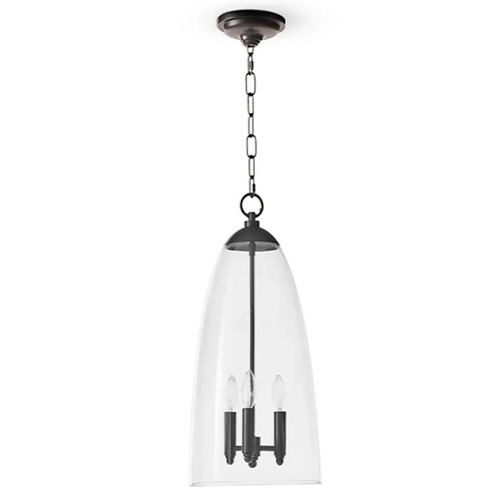 The Maiden Glass Pendant from Regina Andrew brings a graceful, fashion-forward appeal to indoor illumination. Its clear glass dome shade flares gently into an A-line silhouette, creating an airy presence that surrounds the candelabra-style light cluster inside. Suspended from a metal stem and short chain, it offers retro style and refinement. Whether lighting up an entryway or floating above a kitchen island, the pendant adds charm and clarity.