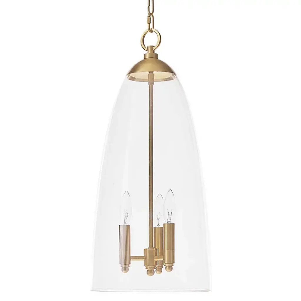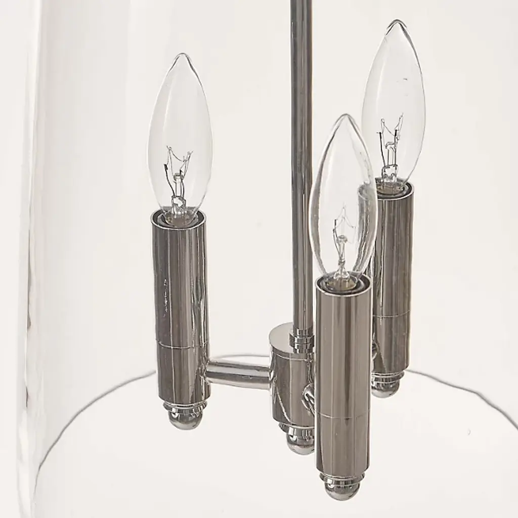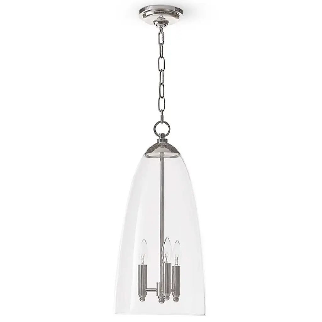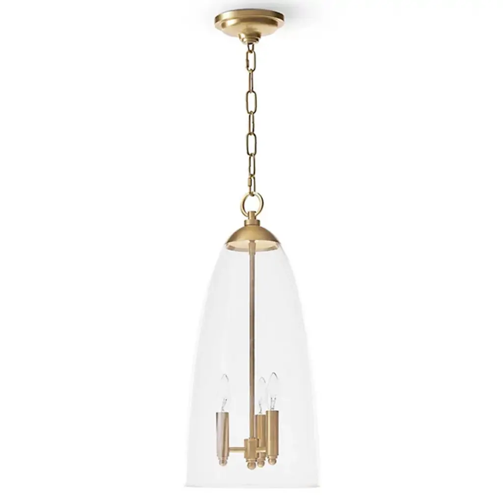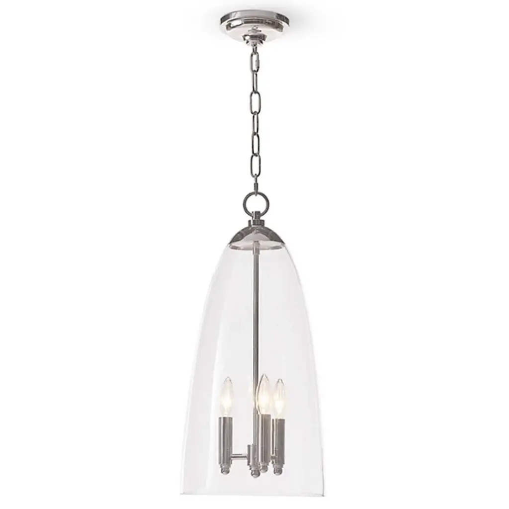 The Maiden Glass Pendant from Regina Andrew brings a graceful, fashion-forward appeal to indoor illumination. Its clear glass dome shade flares gently into an A-line silhouette, creating an airy presence that surrounds the candelabra-style light cluster inside. Suspended from a metal stem and short chain, it offers retro style and refinement. Whether lighting up an entryway or floating above a kitchen island, the pendant adds charm and clarity.