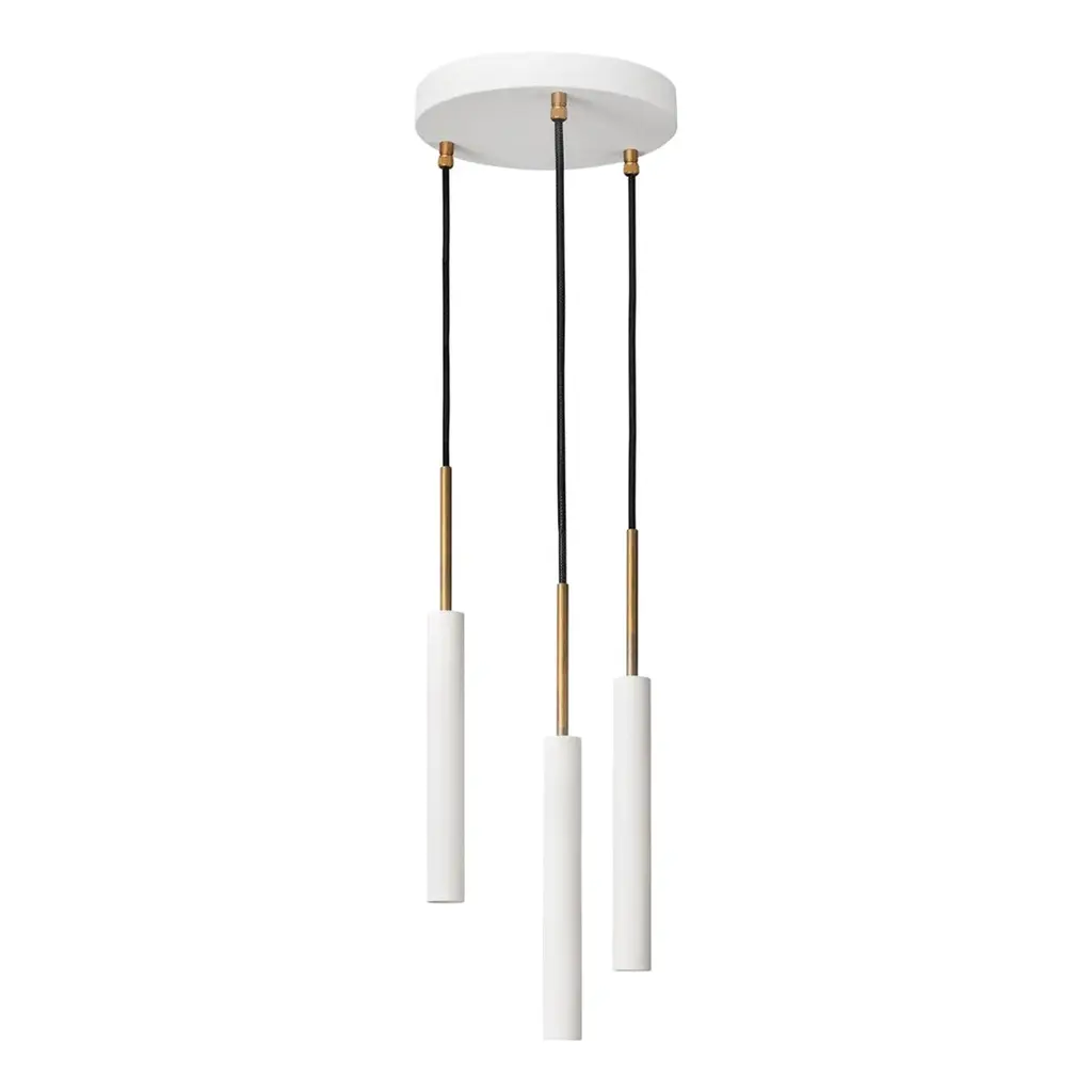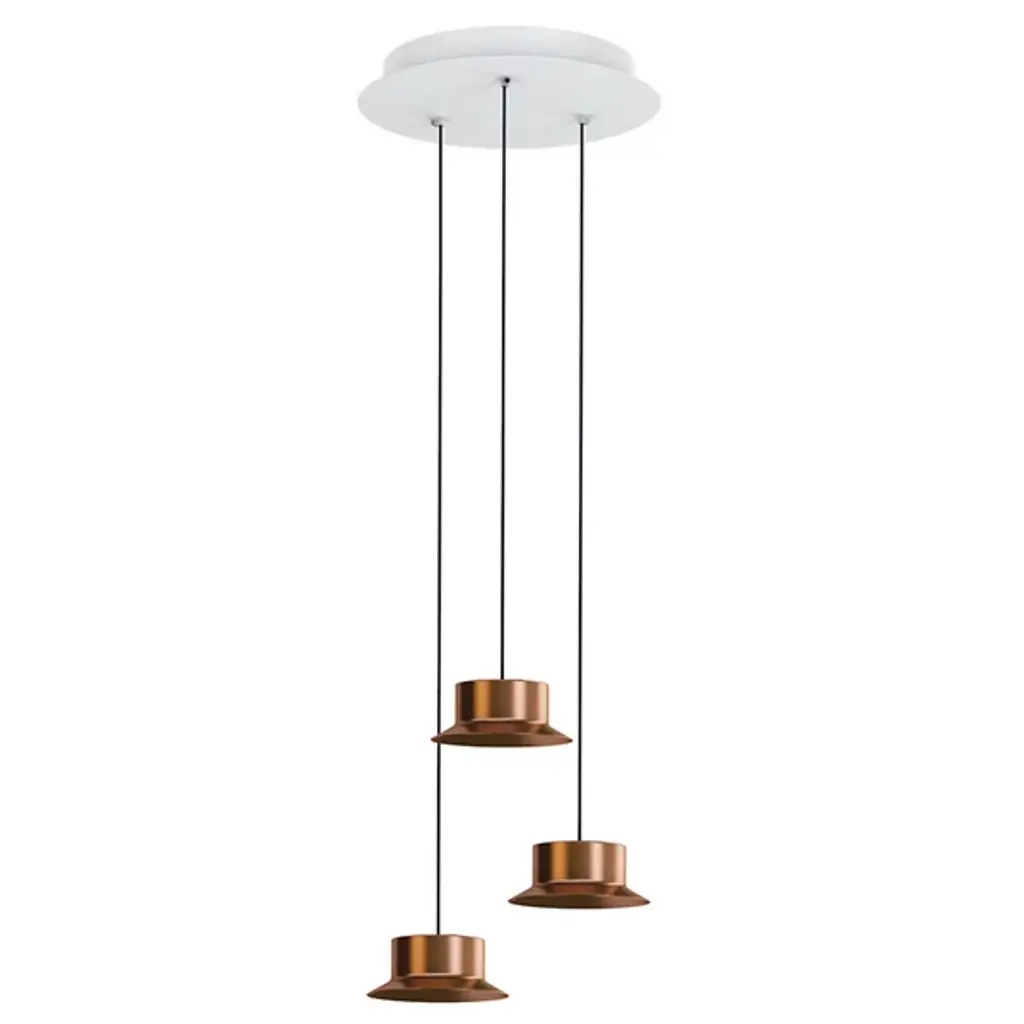 Sit back under the warmth of an artificial sun with The Maine LED Round Multi-Light Pendant by Estiluz. Simple in design but stylish in implementation, it uses a metal canopy with a stepped circular shape to suspend a series of evenly-spaced pendant lights on sturdy woven cords. The housings are simple cylindrical segments with a slightly flaring rim, but they each hold a sophisticated LED lighting element set above a translucent acrylic diffuser disc that blunts their direct brightness into a layer of ambient light below.