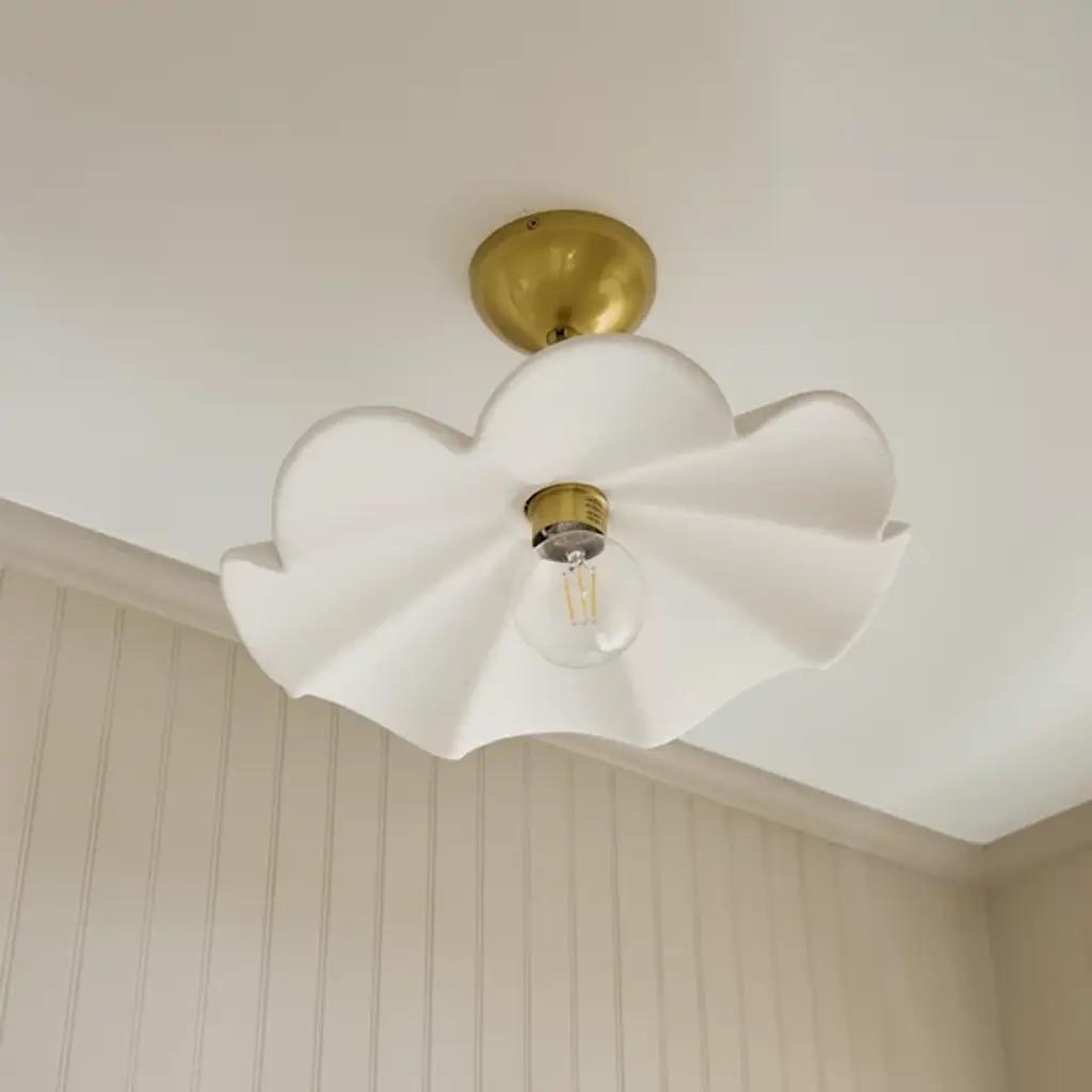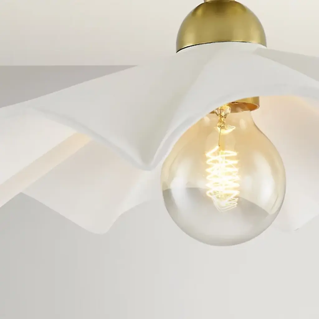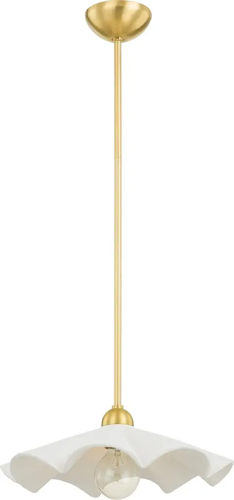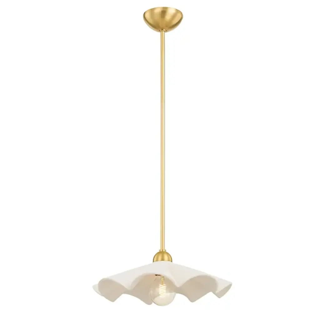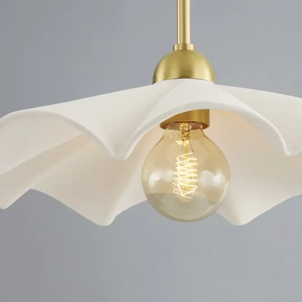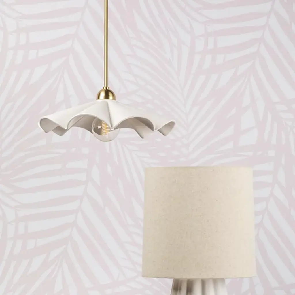 Accentuate the delicate nature of your living space with the Maisie Pendant by Mitzi – Hudson Valley Lighting. An elegant shade of ceramic takes on a neat, ruffling appearance. Designer Megan Molten crafted this product to be able to serve as either a flushmount or a wall sconce. A dome-shaped, metallic ceiling canopy secures this shade, allowing an incandescent bulb to suspend in the air. The fixture’s wavy form highlights its contemporary style. The brightness level of the emitted light can be easily adjusted when you pair the Maisie Pendant with a standard dimmer.