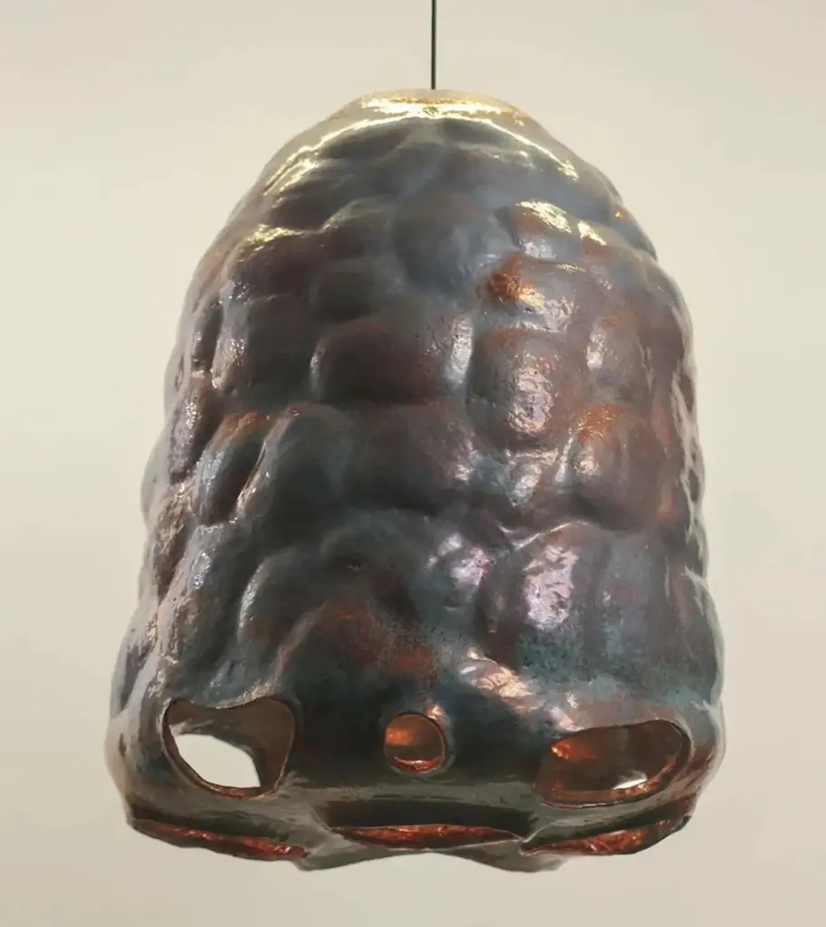 Makivka ceramic pendant lamp 85 by MakhnoDimensions: D 80 x H 85 cmMaterials: CopperAlso available in ceramic.All our lamps can be wired according to each country. If sold to the USA it will be wired for the USA for instance.Makivka grows out of the ceiling. The ceramic poppy-head tickles the glances with a silky light coming from the rough random holes. It is theblossom of the Ukrainian soul.Makhno Studio is a workshop of modern Ukrainian design and architecture. We work in Ukrainian contemporary style. According to international experts, this style will change the Scandinavian on the world design stage.Since 2003, we have been creating projects intertwining Ukrainian traditions, world trends and the Japanese philosophy of wabi-sabi, the forces of nature, human talent and architectural mind. We have completed over 600 projects in 21 countries and are ready to create something significant for you.The main task of our specialists — architects, designers, ceramists — is to create comfort that will become near and dear.