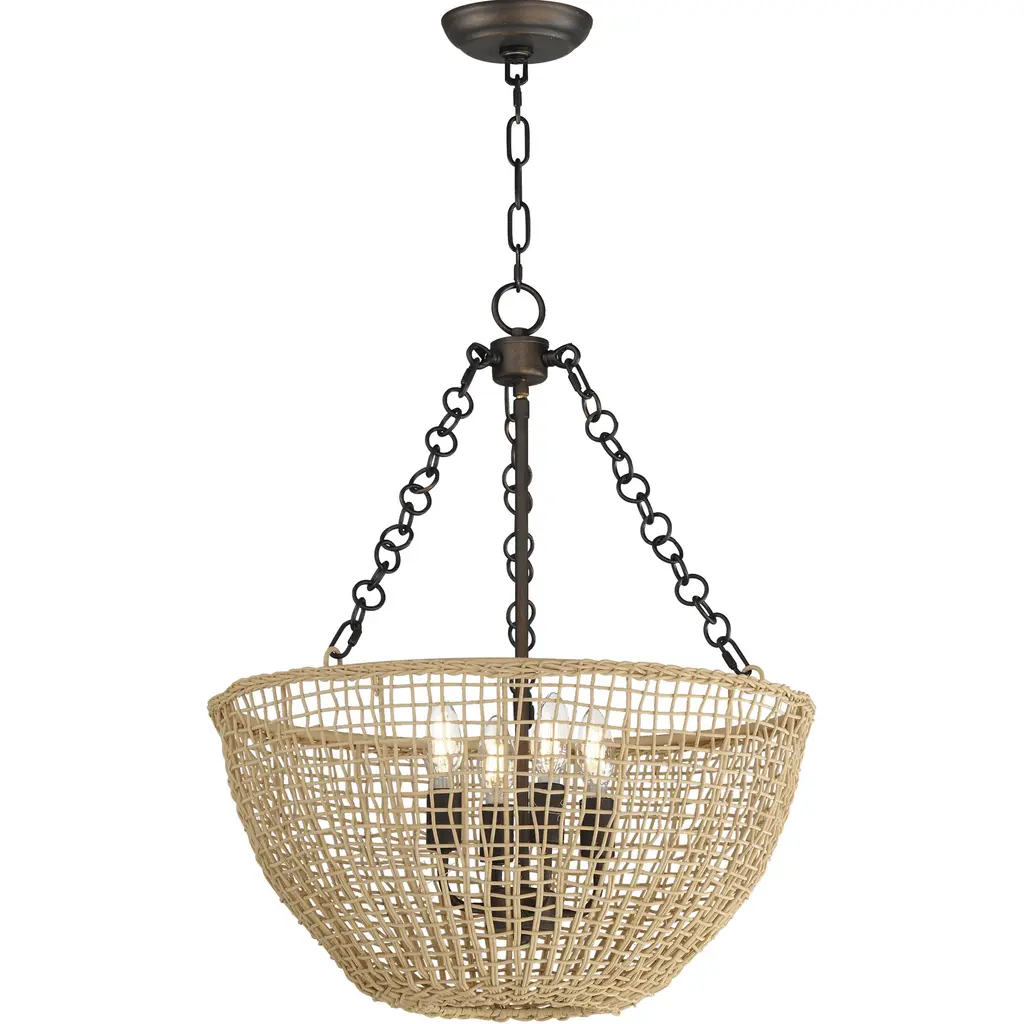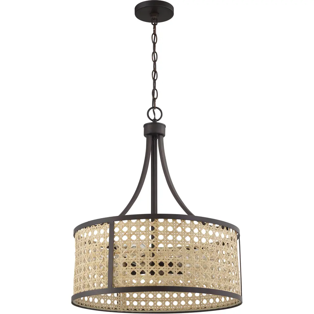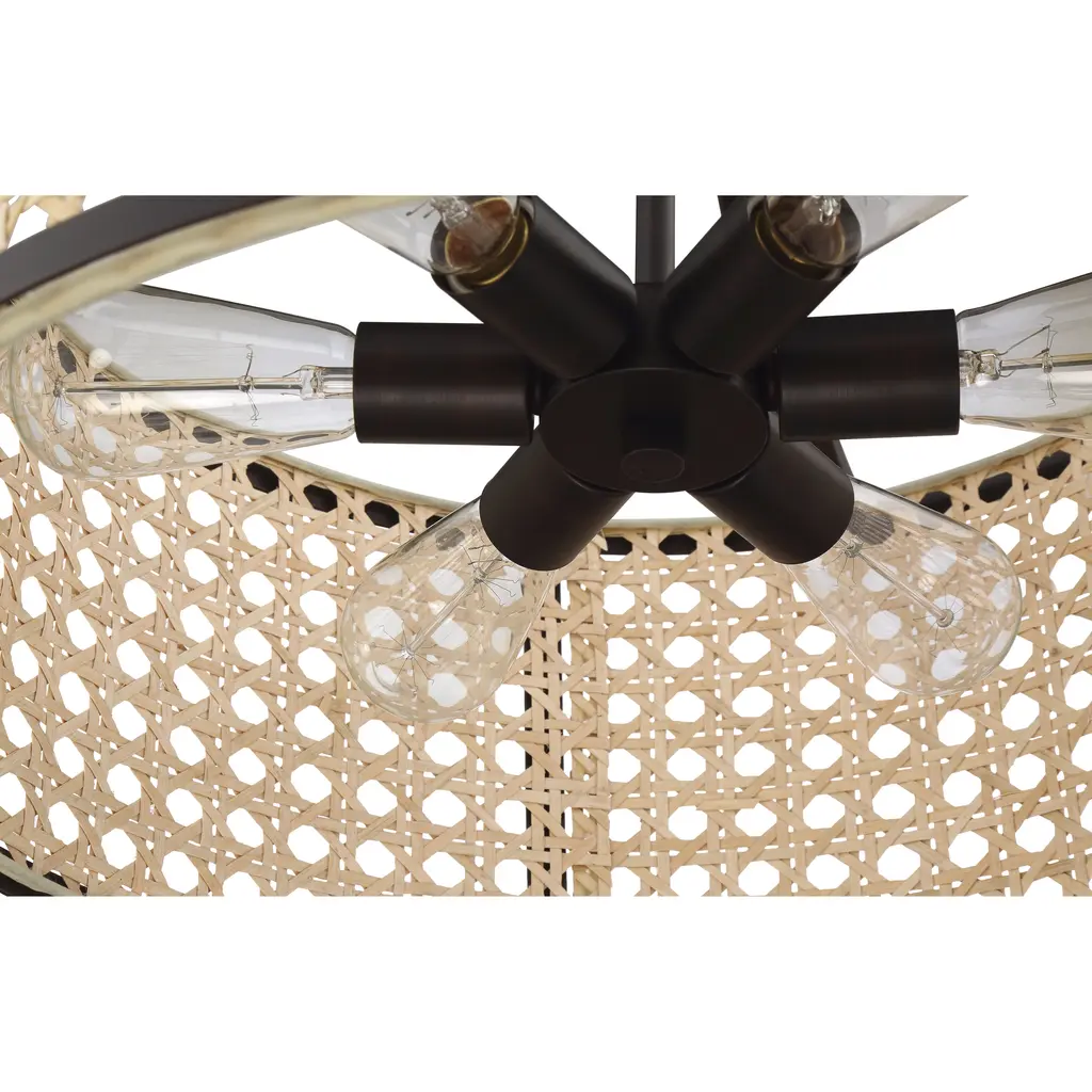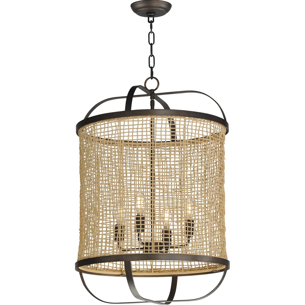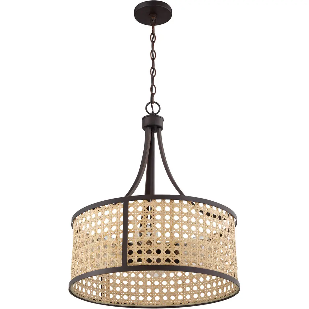 The Malaya Collection combines the warm, earthy tones and texture of real woven rattan with clean transitional silhouettes to create a global experience. Featuring an enlarged woven pattern captured within the rich aged bronze brushed finished cage, the rattan drums of assorted shapes and sizes combine to create a versatile collection welcome in any space.