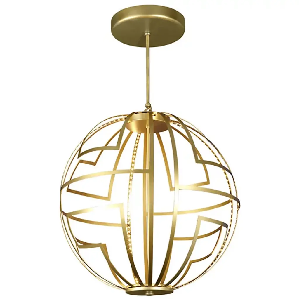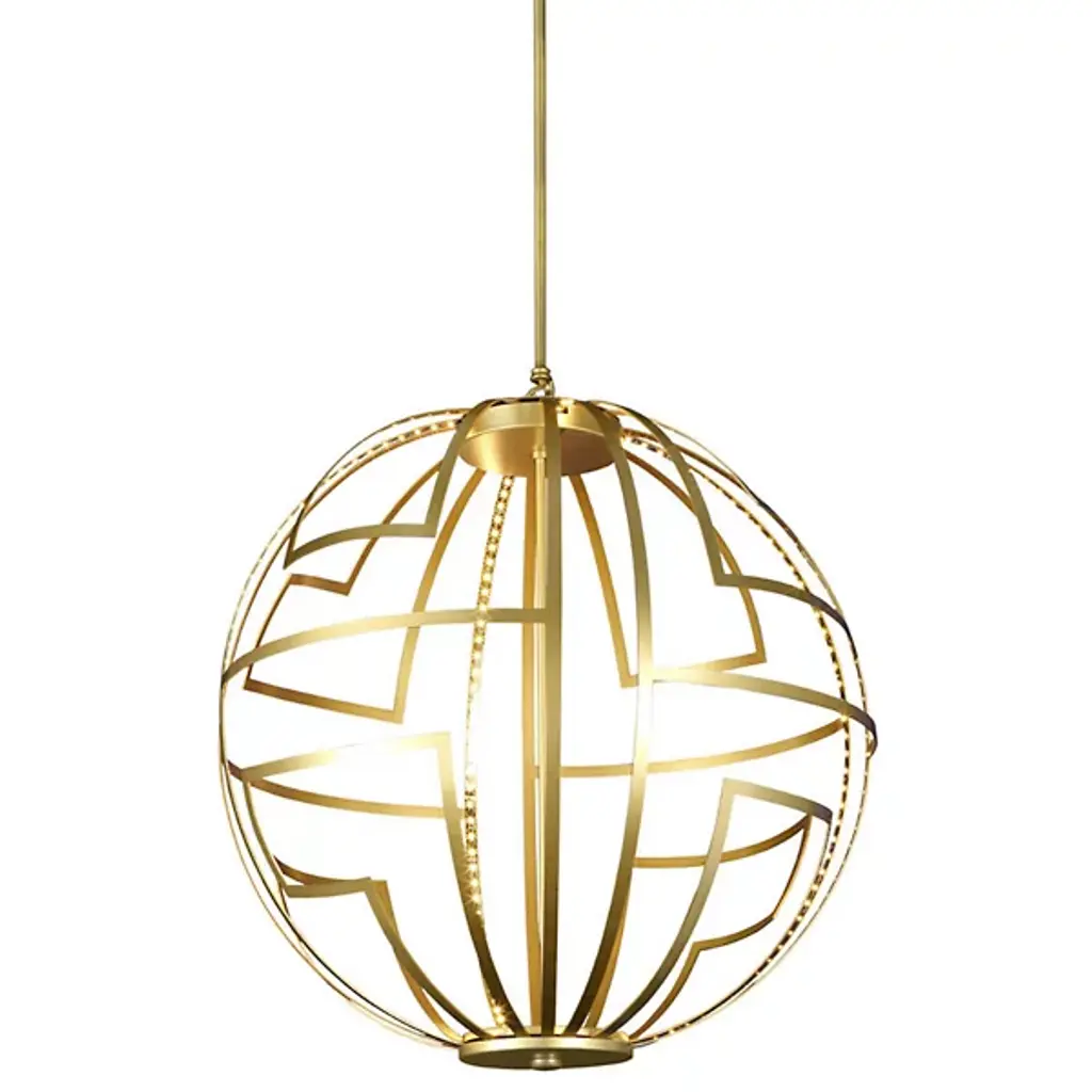 Rectilinear shapes become a sphere in the wondrous design of the Malevich LED Pendant from MYO. It’s a Juan Orts design, illustrating the magical properties of light. The pendant arouses emotions with familiar lines evocative of Art Deco graphics. These lines are made from hand-painted steel; they flow down in an airy composition to create a globe form. LED arrays line the hand-painted steel in a seamless design. While on, the LEDs filter out a golden aura, leaving behind a jazzy silhouette of abstract lines.