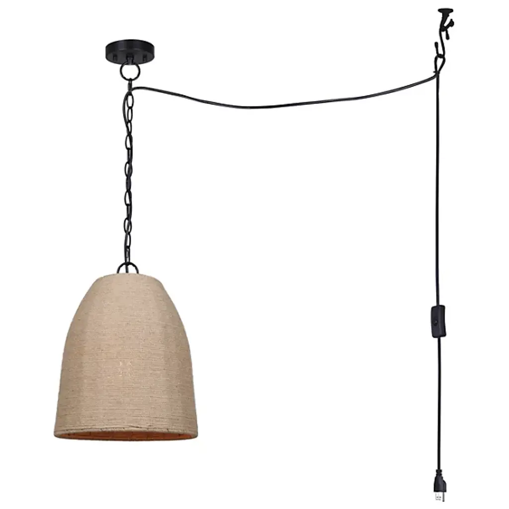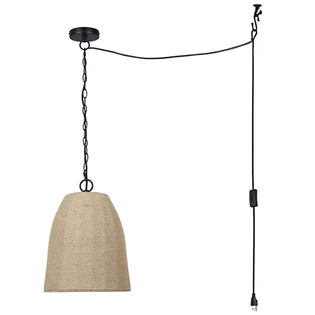 The Malmo Swag Pendant from Canarm incorporates natural rope textures into its design, creating an authentic artisanal appeal. A convenient SWAG kit and on-cord switch allow quick adjustments to light levels. Its adjustable hanging system adapts to different ceiling heights and room configurations. Perfect for kitchen islands, dining spaces, or reading nooks, this pendant delivers focused illumination where needed. The handcrafted rope shade filters light to produce gentle patterns on surrounding surfaces. Its robust construction ensures lasting performance, while the straightforward installation system makes setup effortless.
