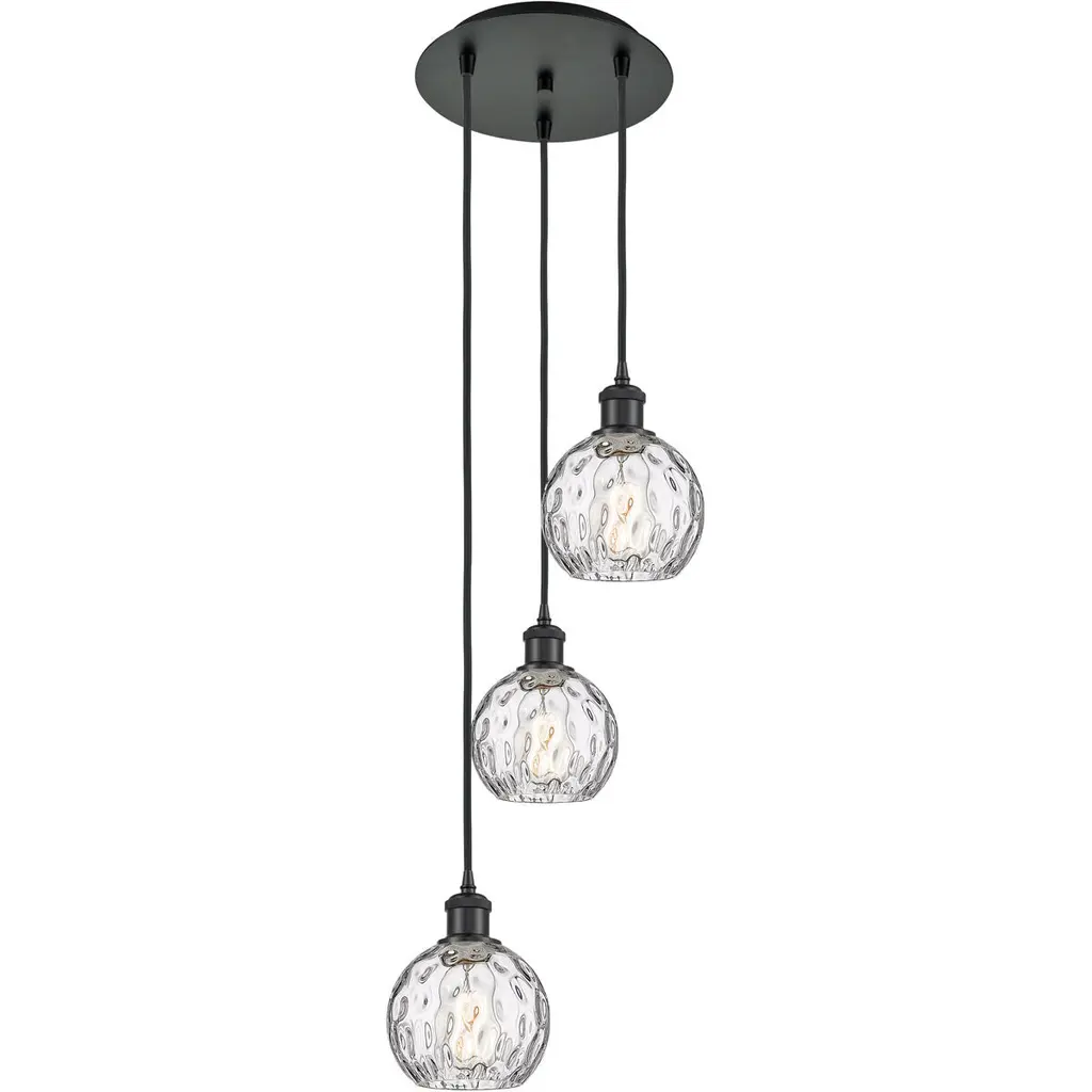 Malone 3 Light 13.5 Inch Matte Black Multi Pendant Ceiling Light In Striped Clear Glass