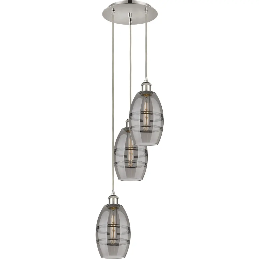 Malone 3 Light 13.5 Inch Polished Nickel Multi Pendant Ceiling Light In Striped Clear Glass