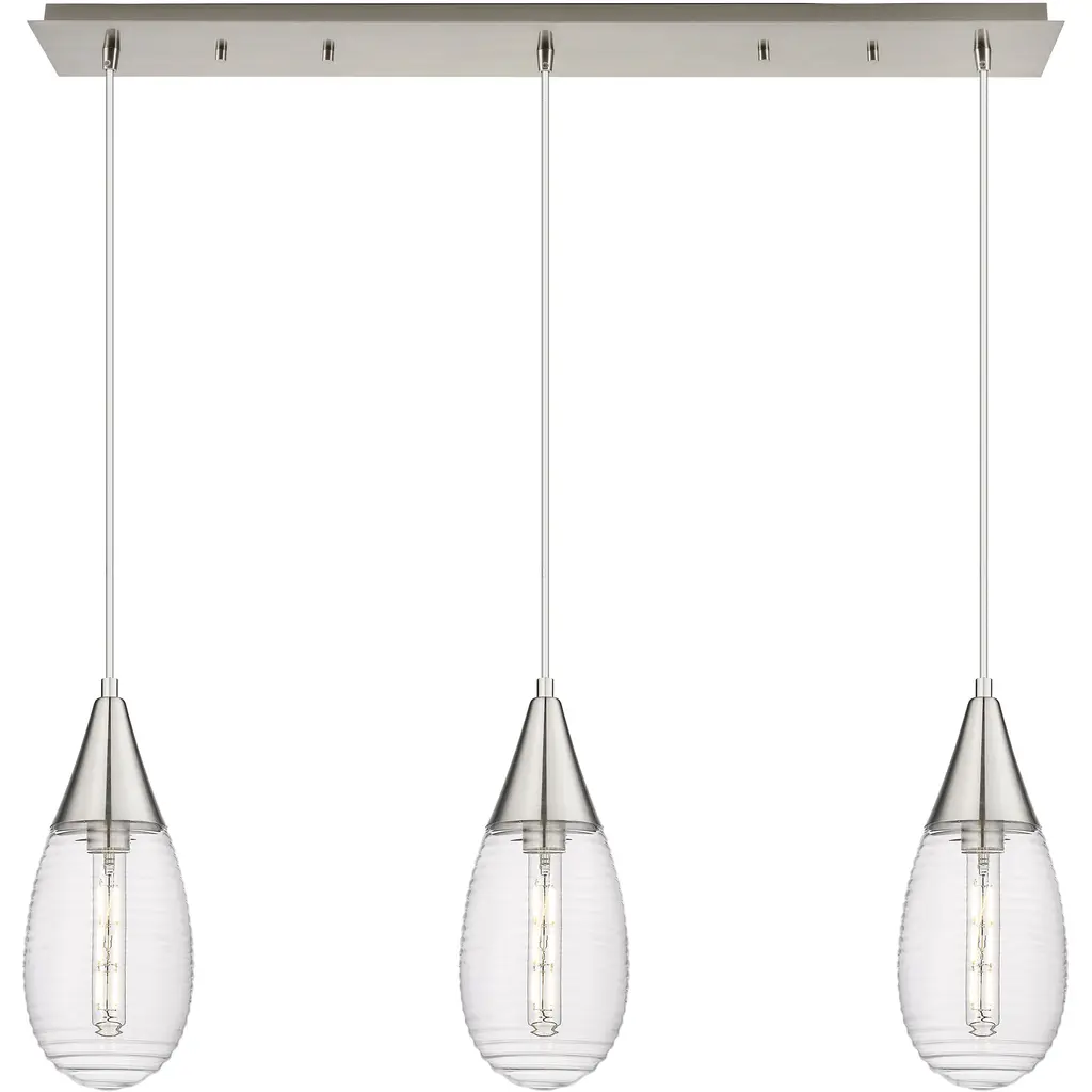 Malone 3 Light 37.75 Inch Matte Black Linear Pendant Ceiling Light In Striped Clear Glass