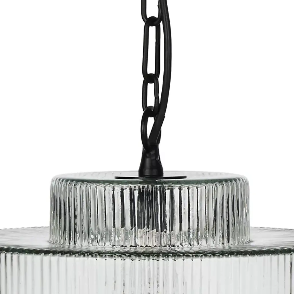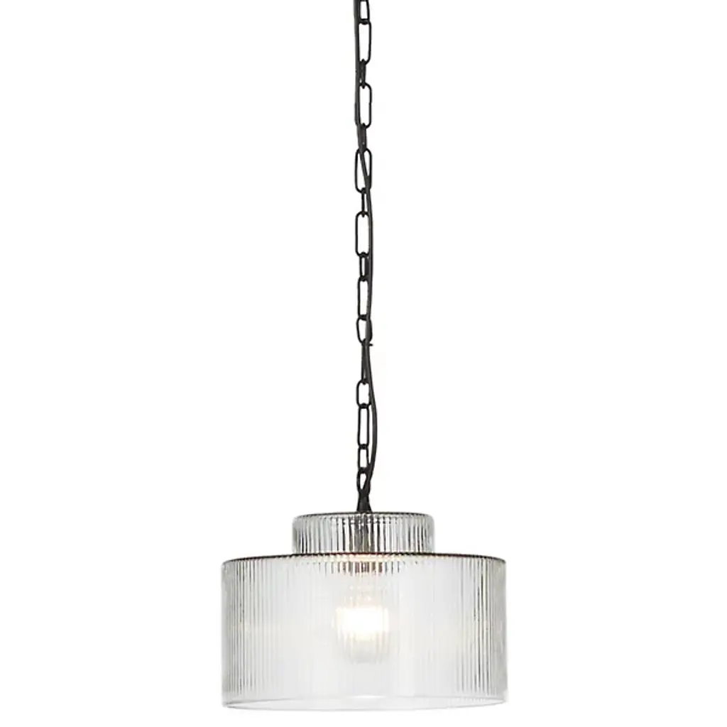 The Malone Pendant from Four Hands takes design cues from Italian glassware. It gives your living space a tiered presentation. Its shade of clear glass is reeded for a sophisticated appearance. The glass is arranged in a step-like fashion, adding a sense of dimensionality and depth. A single LED allows the shade to emit a vibrant glow that enhances the visibility of your surroundings. The chandelier’s framework is composed of durable iron. A linked chain secured to a ceiling canopy keeps the fixture balanced in midair.