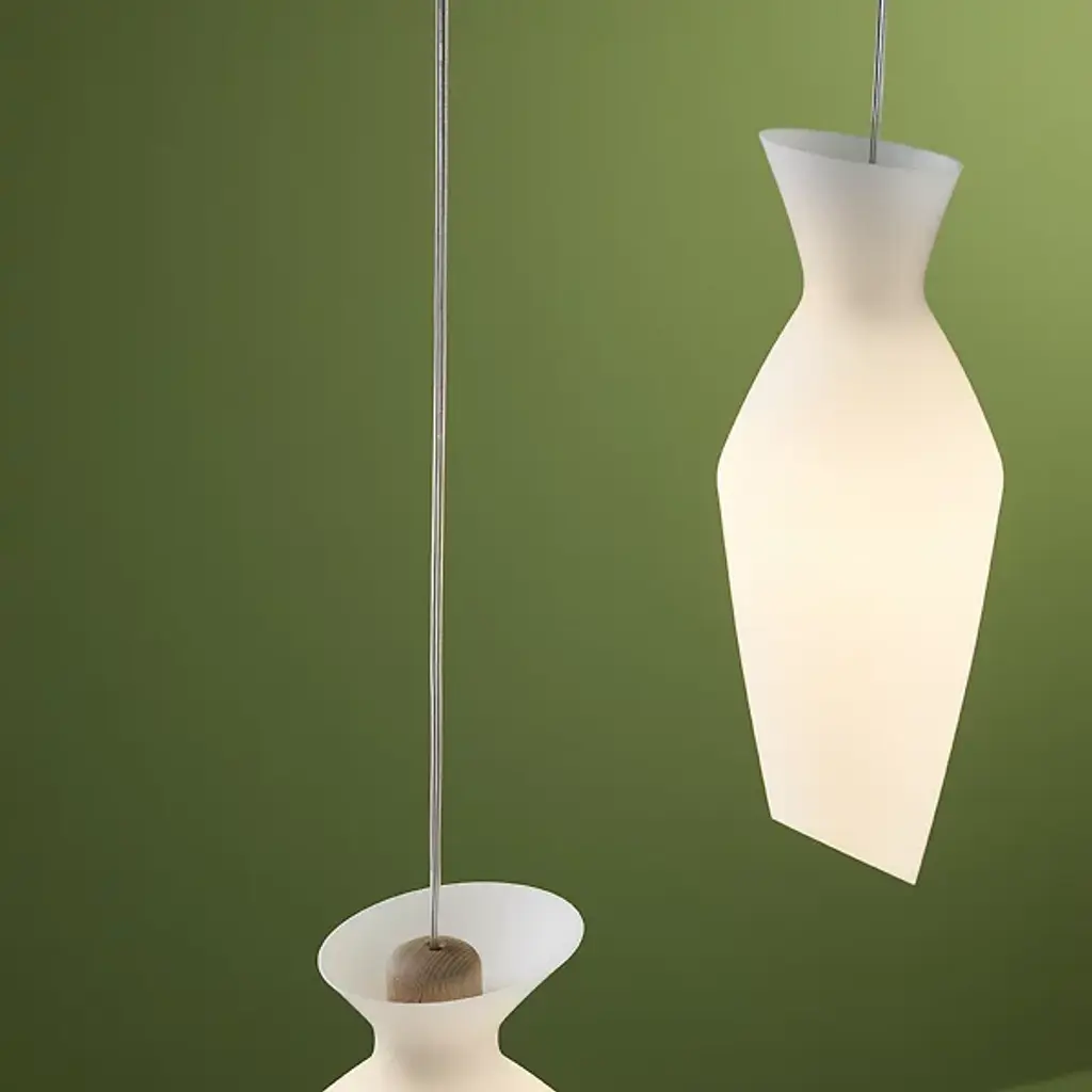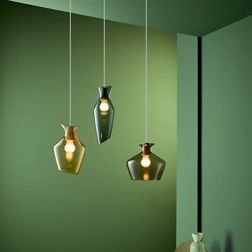 The Malvasia F52 1 Mini Pendant by Fabbian was created by Italian designer Gregorio Facco and is an homage to Bacchus, the god of agriculture, wine, and fertility. Simple and beautiful, the elegant shape of this design was inspired by the land, tradition, vineyards, and sun-soaked hillsides. Reminiscent of wine glasses and decanters, the rounded silhouette of the blown glass shade creates a welcoming environment wherever it is suspended. A wooden top completes this piece and adds to the warmth of this design.