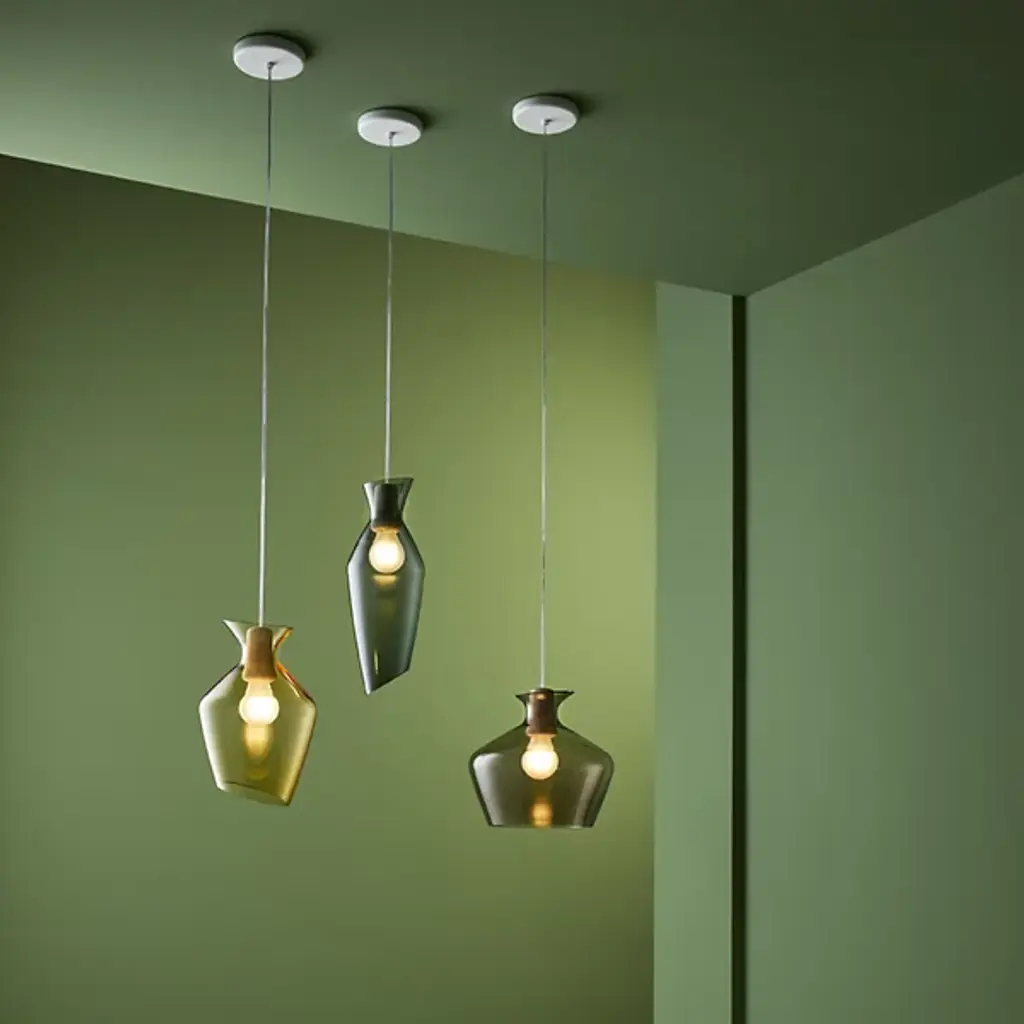 The Malvasia F52 3 Pendant by Fabbian finds its name and inspiration from a variety of wine grapes, the land, tradition, vineyards, and sun-soaked hillsides. An homage to Bacchus, the god of agriculture and wine, this design from Gregorio Facco has a rounded silhouette and oblique edges that evoke the look of a wine glass or decanter. This blown glass shade is paired with a simple, wooden top that lends a warm touch to this design as it filters a lovely layer of light onto its surroundings, creating a welcoming environment.