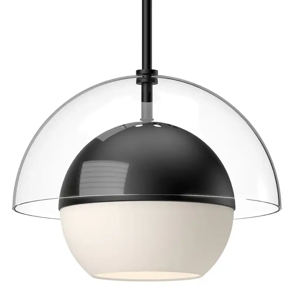 The Mana is a playful double-glass pendant, with a globe-shaped opal glass centered in a radiused outer transparent glass ring. Our Trans-Smoke colored blown glass complements the soft white Opal cased glass, which can suit any classic or modern decor. Opal has a very tranquil glow that is pleasing in appearance, as the Trans-Smoke glass sparkles with the accents from that glow. The smooth satin finish on the opals outer layer is a result of an extensive etching process. This blown glass combination is handcrafted by a skilled artisan, utilizing century-old techniques passed down from generation to generation. The cord pendant fixture is equipped with a 10' SVT cordset and a low profile flat monopoint canopy. These stylish and functional luminaries are offered in a beautiful Black finish.