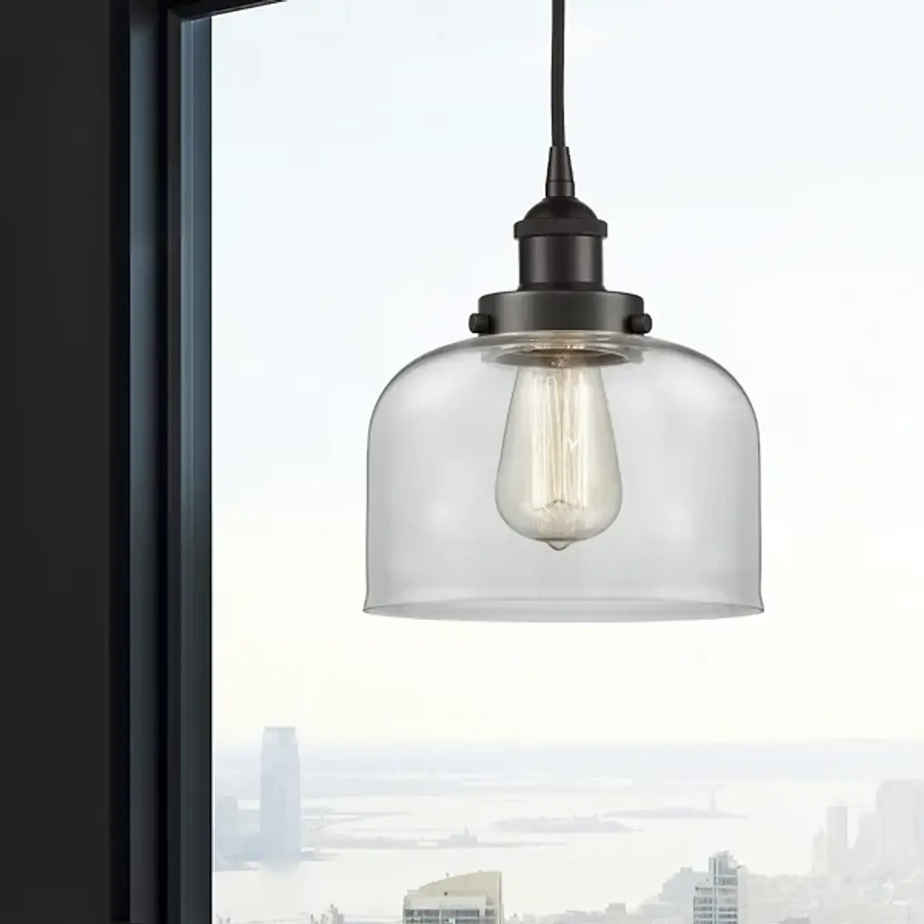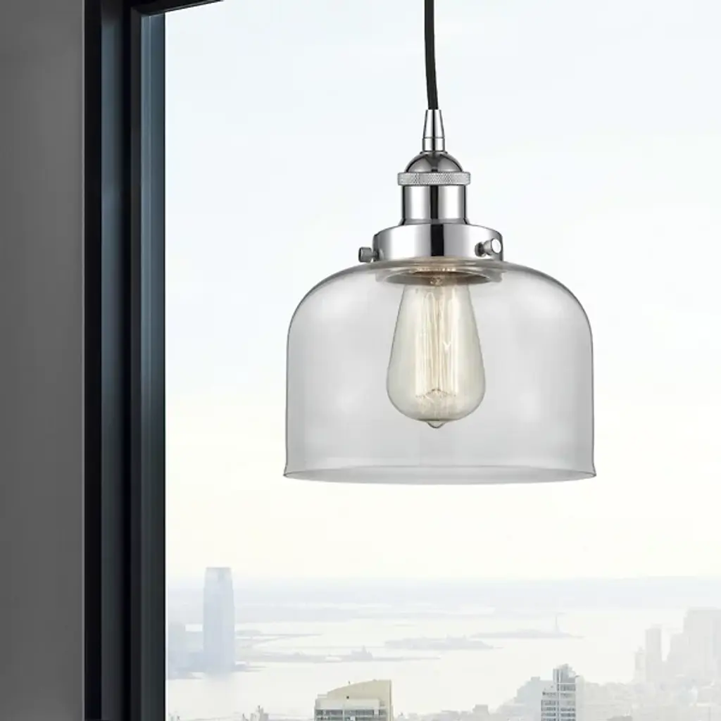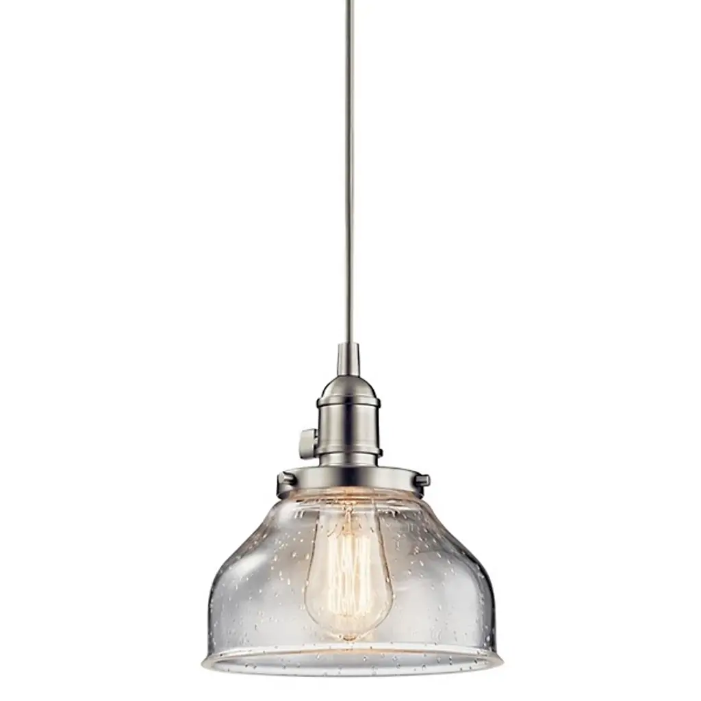 An industrial-inspired design, the Mandele Pendant by Alder & Ore combines utilitarian simplicity with the elegance of a skirted glass bell shade. The stem-hung mini pendant makes a statement as a pair of bedside lights in a contemporary bedroom or as a single light above a small kitchenette. In a modern rustic kitchen, a row of these cool kitchen pendant lights brings warm ambient light above a kitchen island or dining counter.