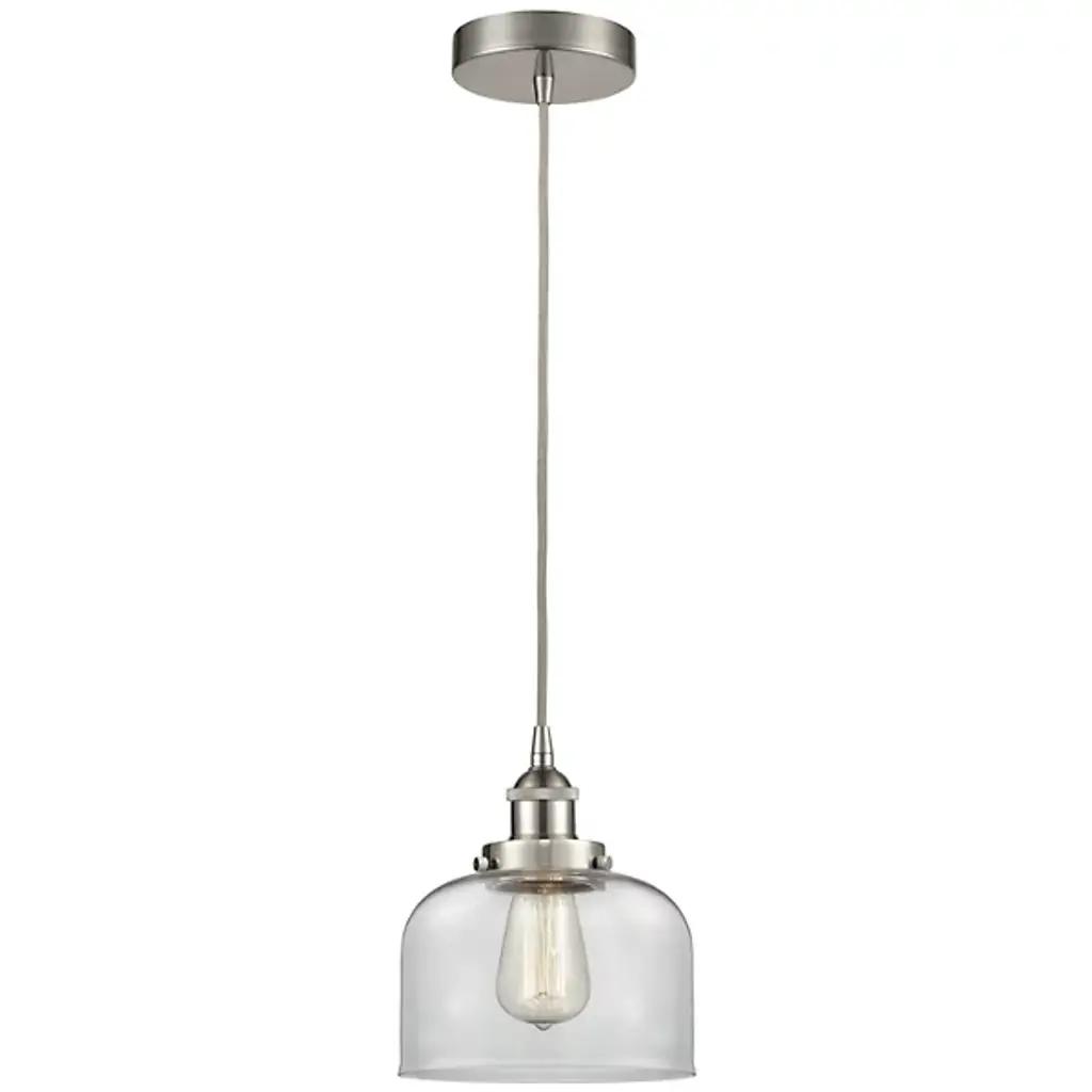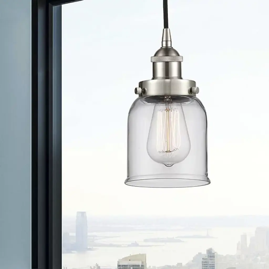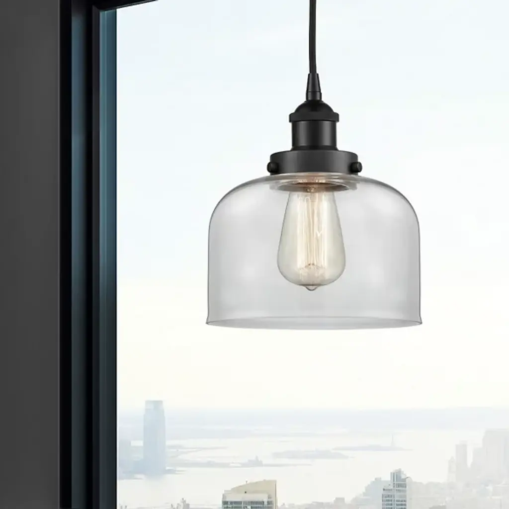 An industrial-inspired design, the Mandele Pendant by Alder & Ore combines utilitarian simplicity with the elegance of a skirted glass bell shade. The stem-hung mini pendant makes a statement as a pair of bedside lights in a contemporary bedroom or as a single light above a small kitchenette. In a modern rustic kitchen, a row of these cool kitchen pendant lights brings warm ambient light above a kitchen island or dining counter.