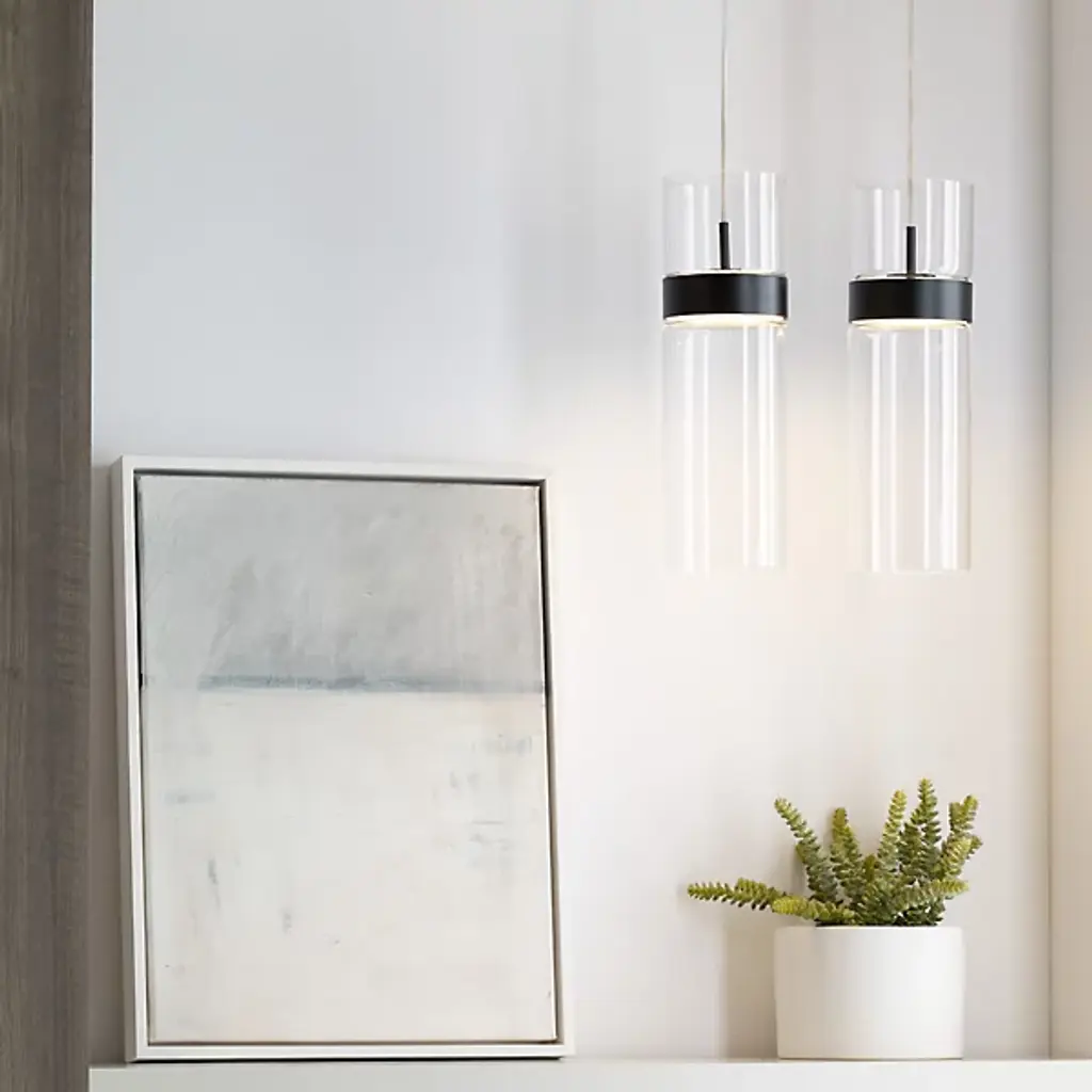 The Manette LED Grande Mini Pendant 277V from Visual Comfort Modern, formerly known as Tech Lighting, complements the sophisticated setting with efficient, multi-directional lighting and a silhouette defined by handblown glass. Through an ultra-fine cord suspension, the pendant can be arranged as part of a tight series. With an almost levitating quality, a metal LED housing nestles inside the top half of the glass shade with a pop of contrast. The outer glass cylinder offers crisp optics as a handblown form. The reflective glass visualizes the upward and downward direction of the pendant’s LED beam. The multi-directional light pleases for ambiance and task purposes.