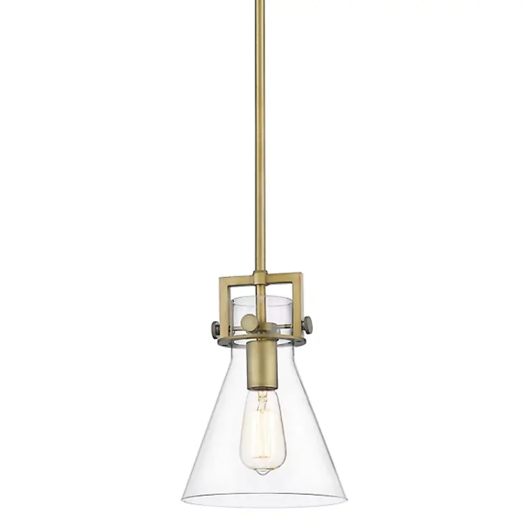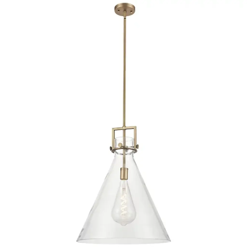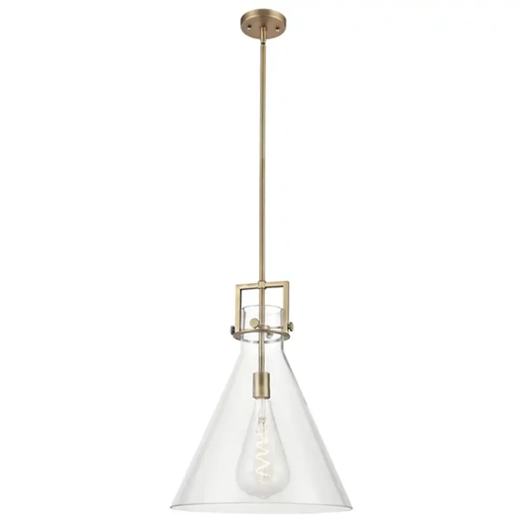 Manfredo Pendant by Alder & Ore blends industrial charm with versatile function, perfect for adding a touch of character to any space. This pendant light features a modern cone shape, making it a great fit for diverse areas like kitchens, dining rooms, and game rooms. Its design showcases a sophisticated blend of steel, cast brass, and glass materials, creating a striking fixture ideal for both contemporary and industrial-themed interiors.