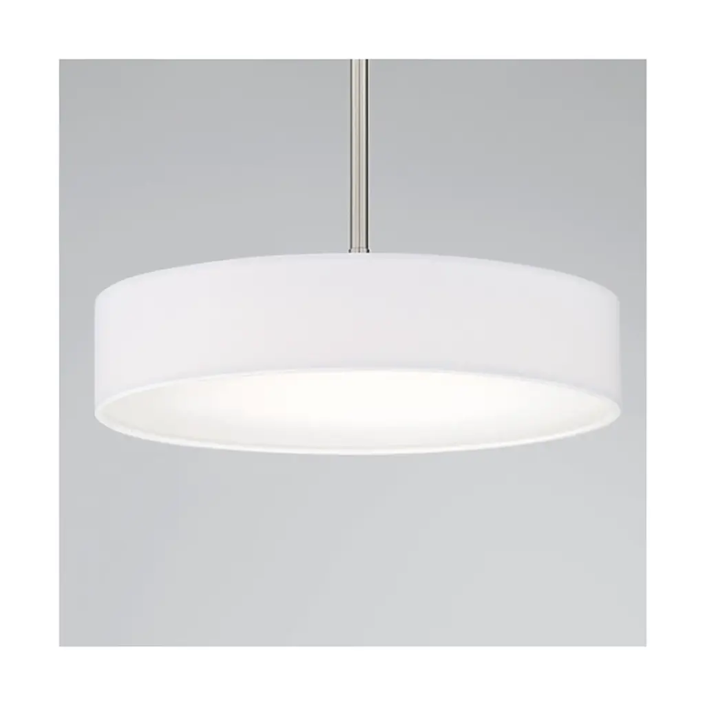 Give your décor a sophisticated urban edge with the Manhattan LED Pendant by dweLED. Its design features a seamless White Fabric shade with integrated LEDs that produce a warm, even ambiance once lit. Supported by a slim Brushed Nickel downrod, which offers a subtle shimmer to the illumination. Converts from a pendant to a semi-flushmount.
