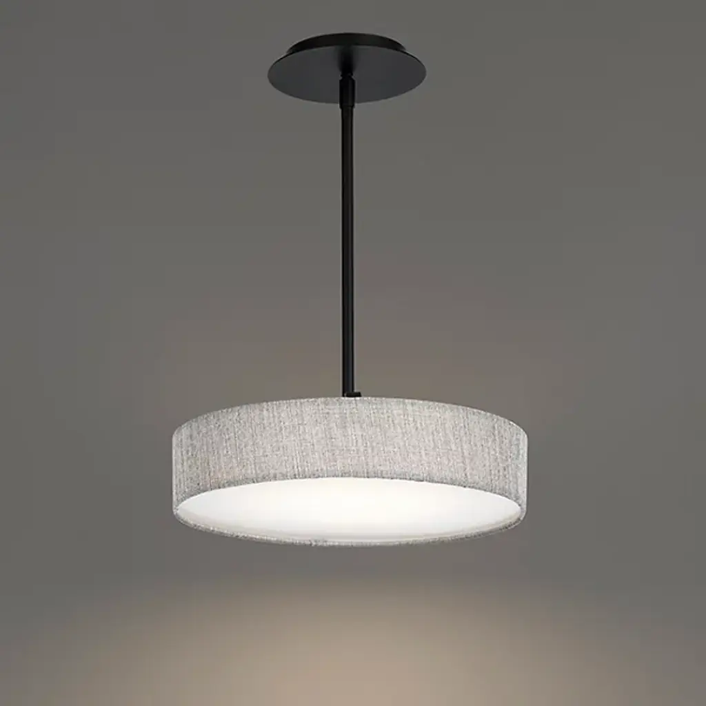 Give your décor a sophisticated urban edge with the Manhattan LED Pendant by dweLED. Its design features a seamless White Fabric shade with integrated LEDs that produce a warm, even ambiance once lit. Supported by a slim Brushed Nickel downrod, which offers a subtle shimmer to the illumination. Converts from a pendant to a semi-flushmount.
