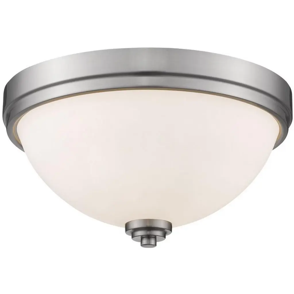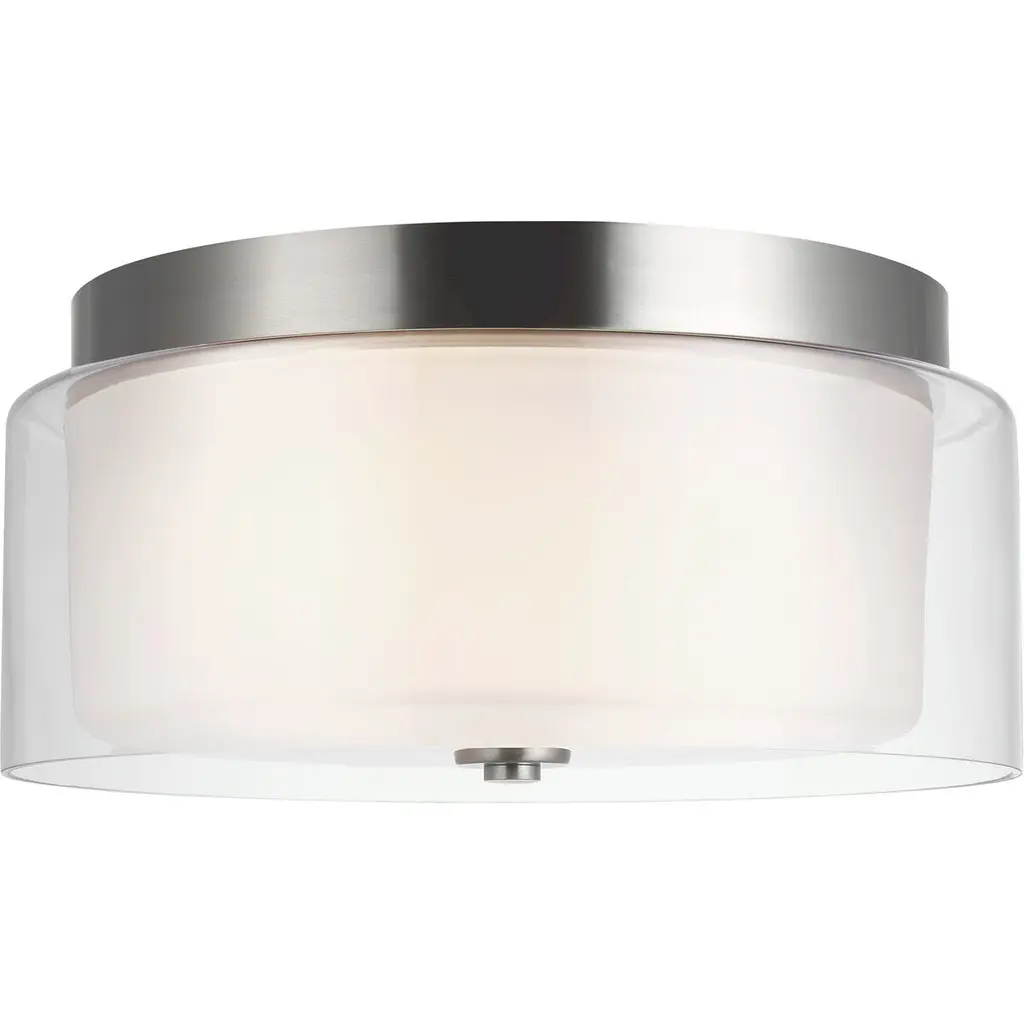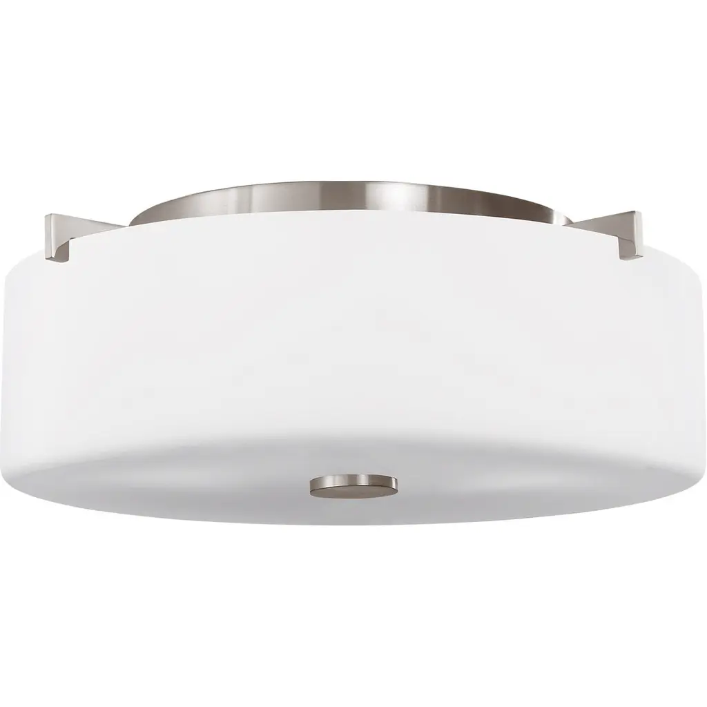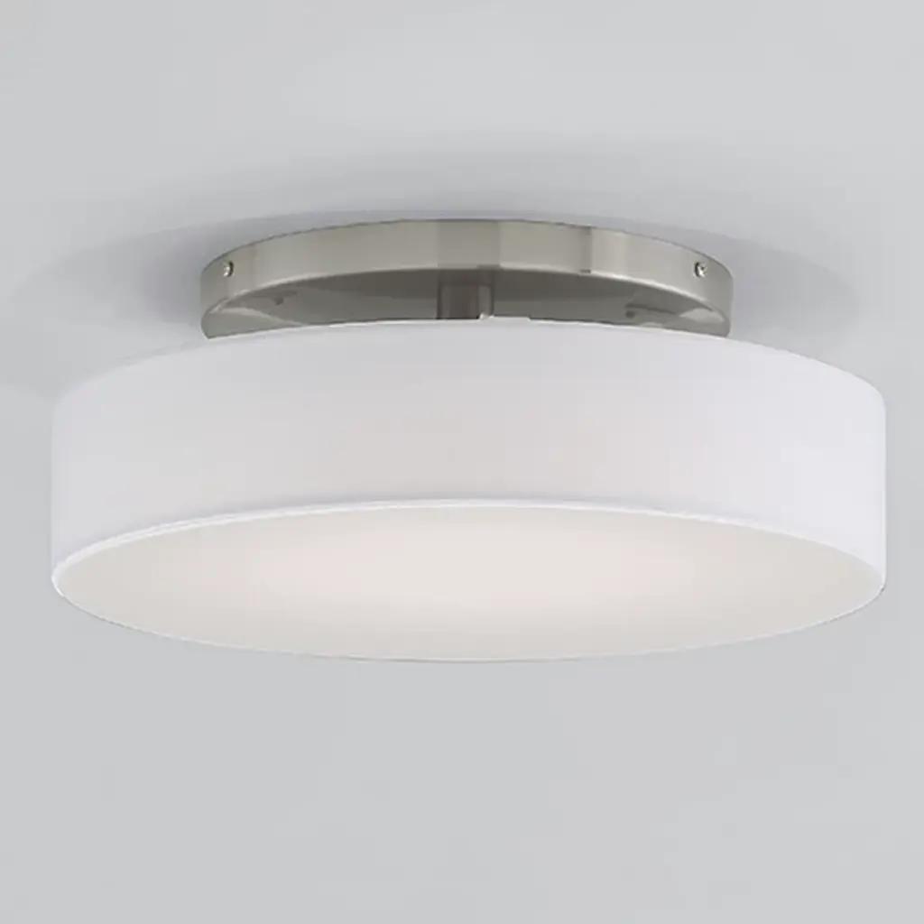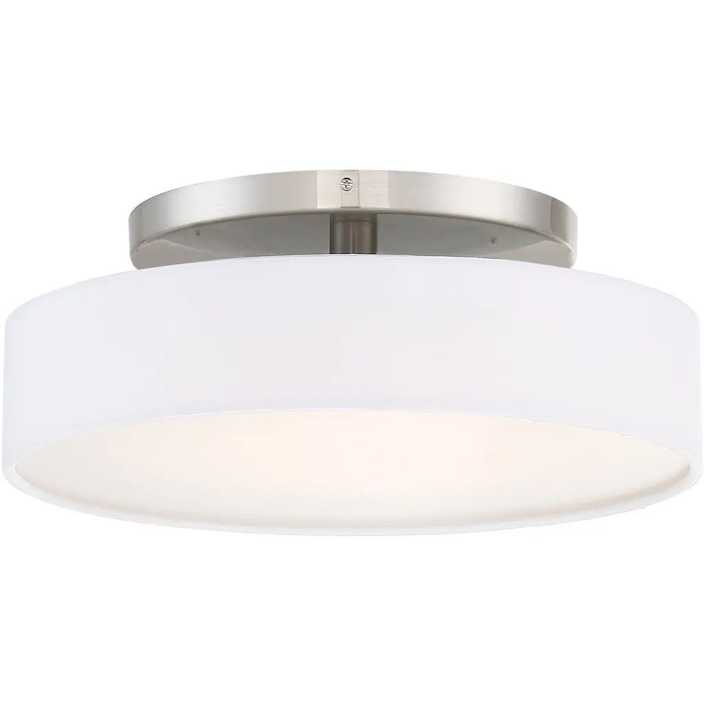 The Manhattan Semi-Flushmount by dweLED gives you the high-quality function and versatility of big city lighting without all the distracting glitz and glamour. Instead, a trimless White Fabric shade takes center stage, providing a clean, even ambiance that is both welcoming and professional in appearance. Low-profile Brushed Nickel hardware gives support while complementing the modern aesthetic.