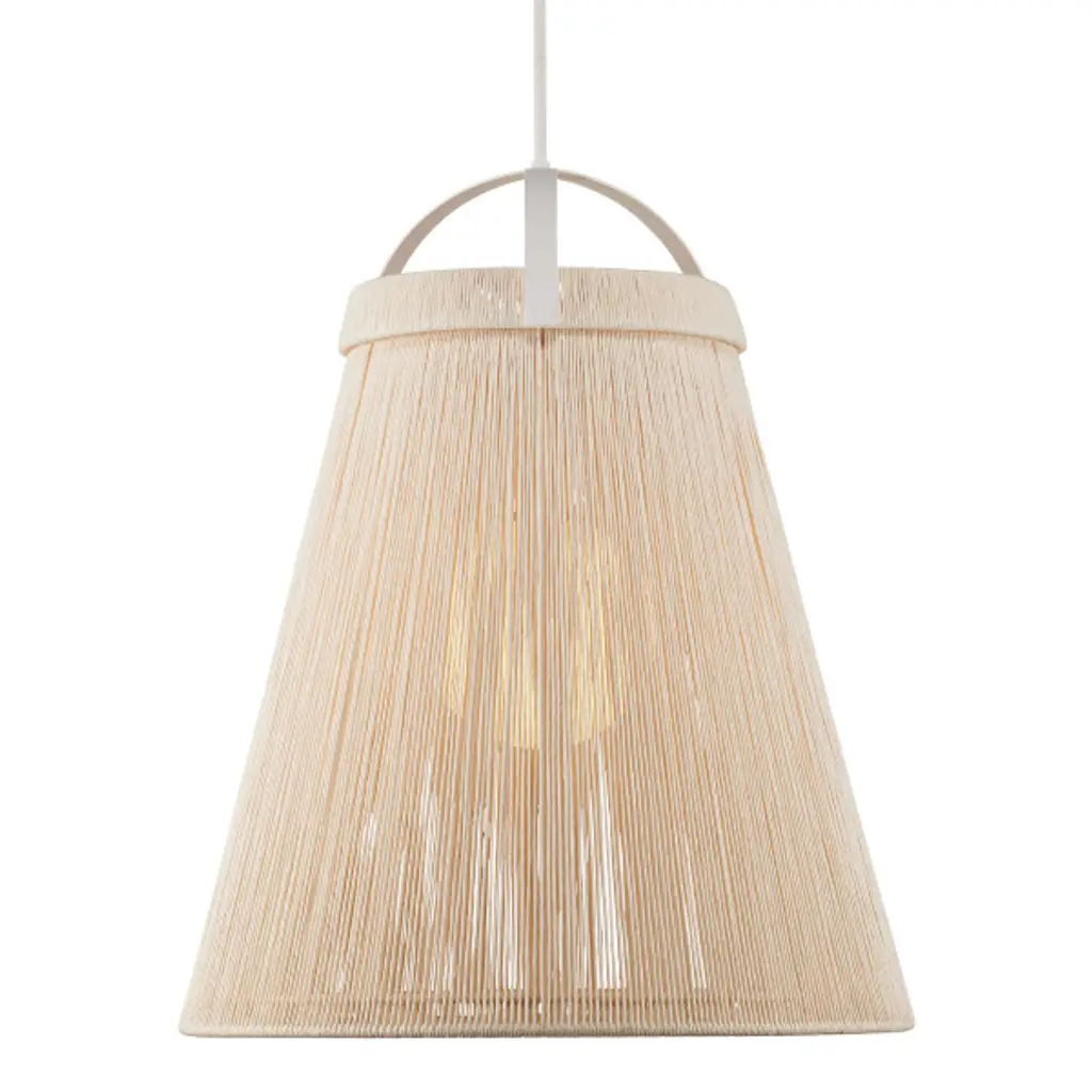 The Manhattan Pendant from Woven blends urban sophistication with natural simplicity. Hundreds of jute strands create a geometric shade that seems to float in space. Each fiber contributes to the pendant's precise angles while maintaining an organic quality. This hardwired fixture needs professional installation and works best with standard ceiling heights. The design pulls inspiration from New York City's architectural heritage - its angled sides mirror the city's iconic skyscrapers. Perfect above dining tables or kitchen islands, where its clean lines define the space without dominating it.