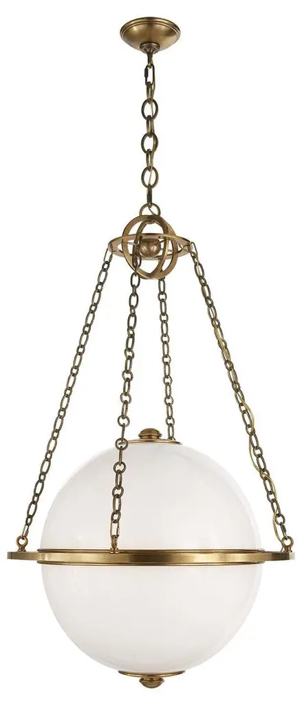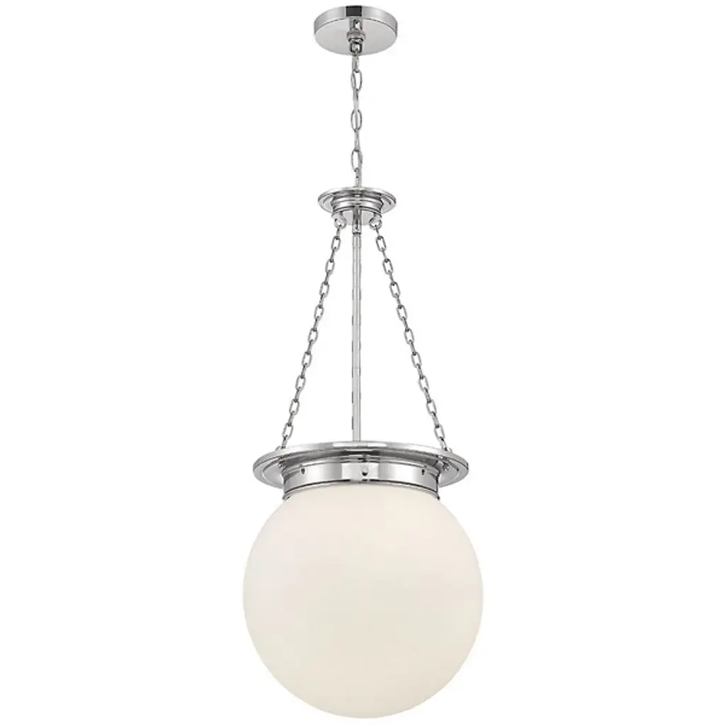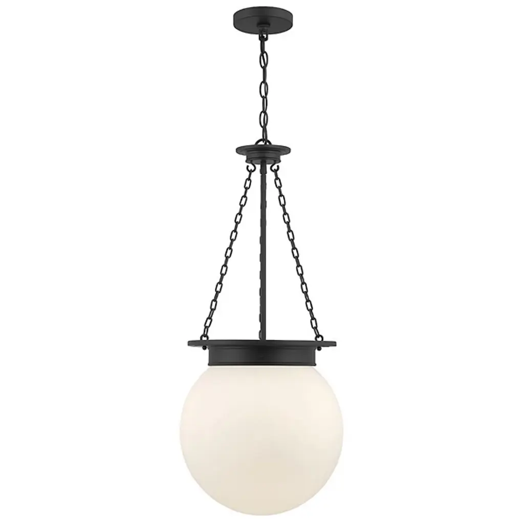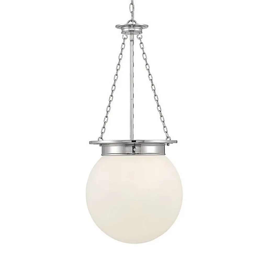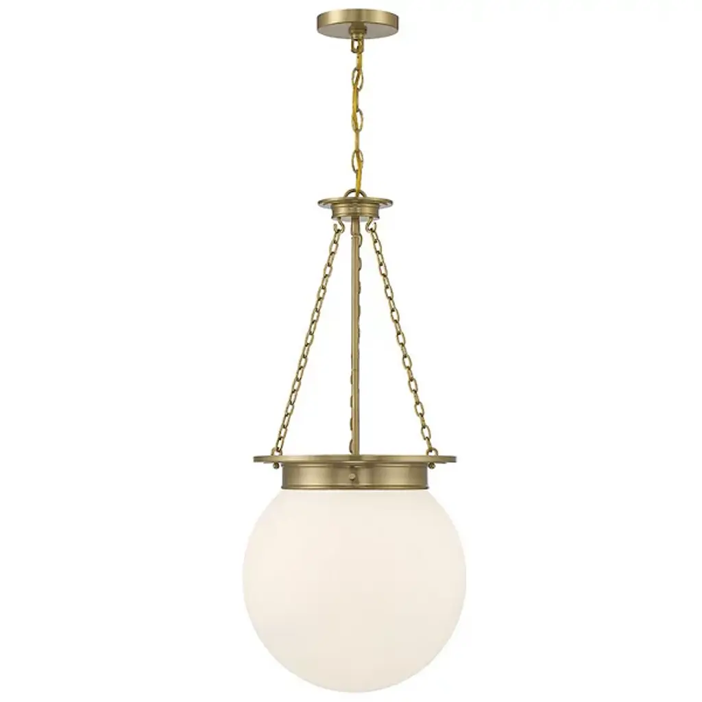 Grace your space with the modern-vintage fusion of the Manor Pendant from Savoy House. This classically inspired fixture proves traditional designs still shine, giving your décor an elevated touch or keeping it elegantly understated and featuring a smooth round opal glass orb shade suspended from an understated metal ring. Fine chain accents add a touch of flair, while the clean-lined metal framework provides a canvas for the pendant's focal point—that glowing glass globe. With its interplay of modern and vintage vibes, the pendant shines, bringing a luminous grace overhead.