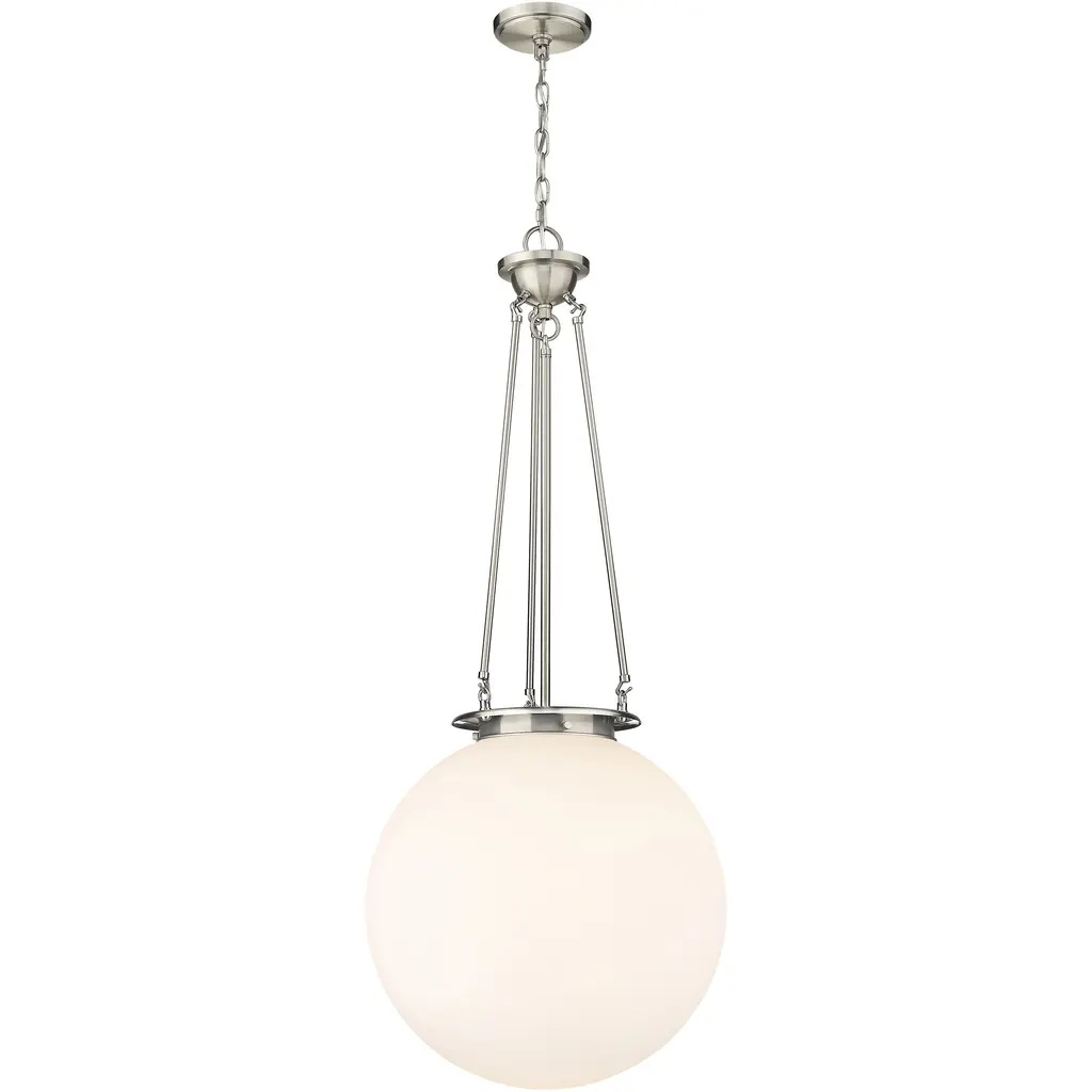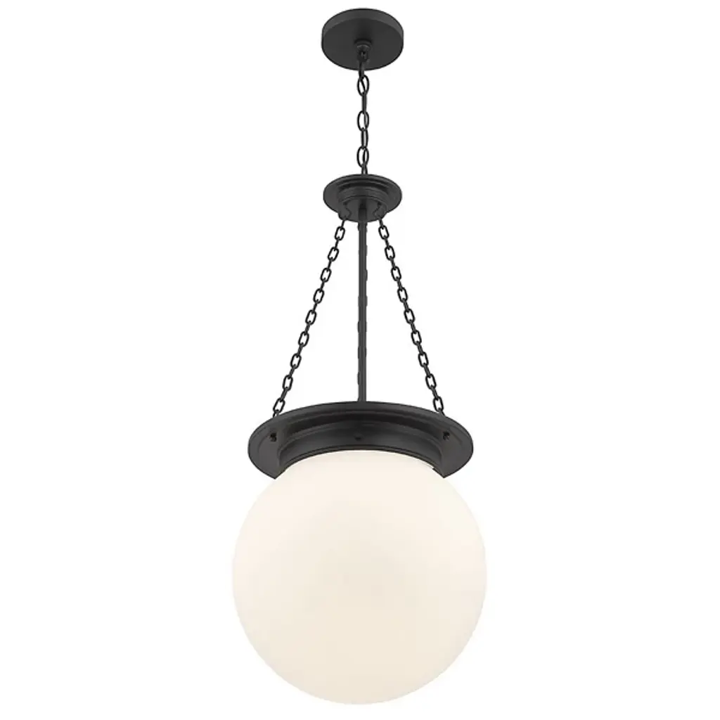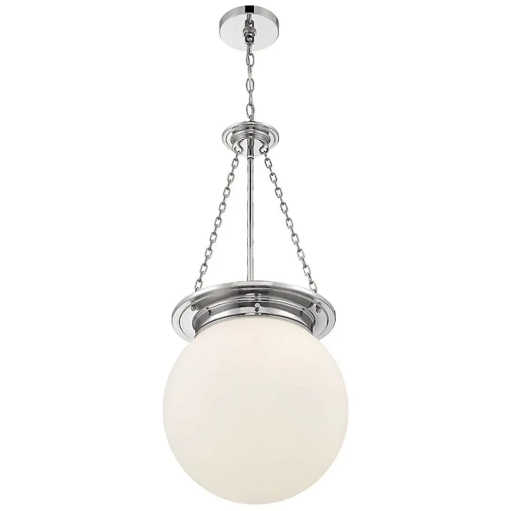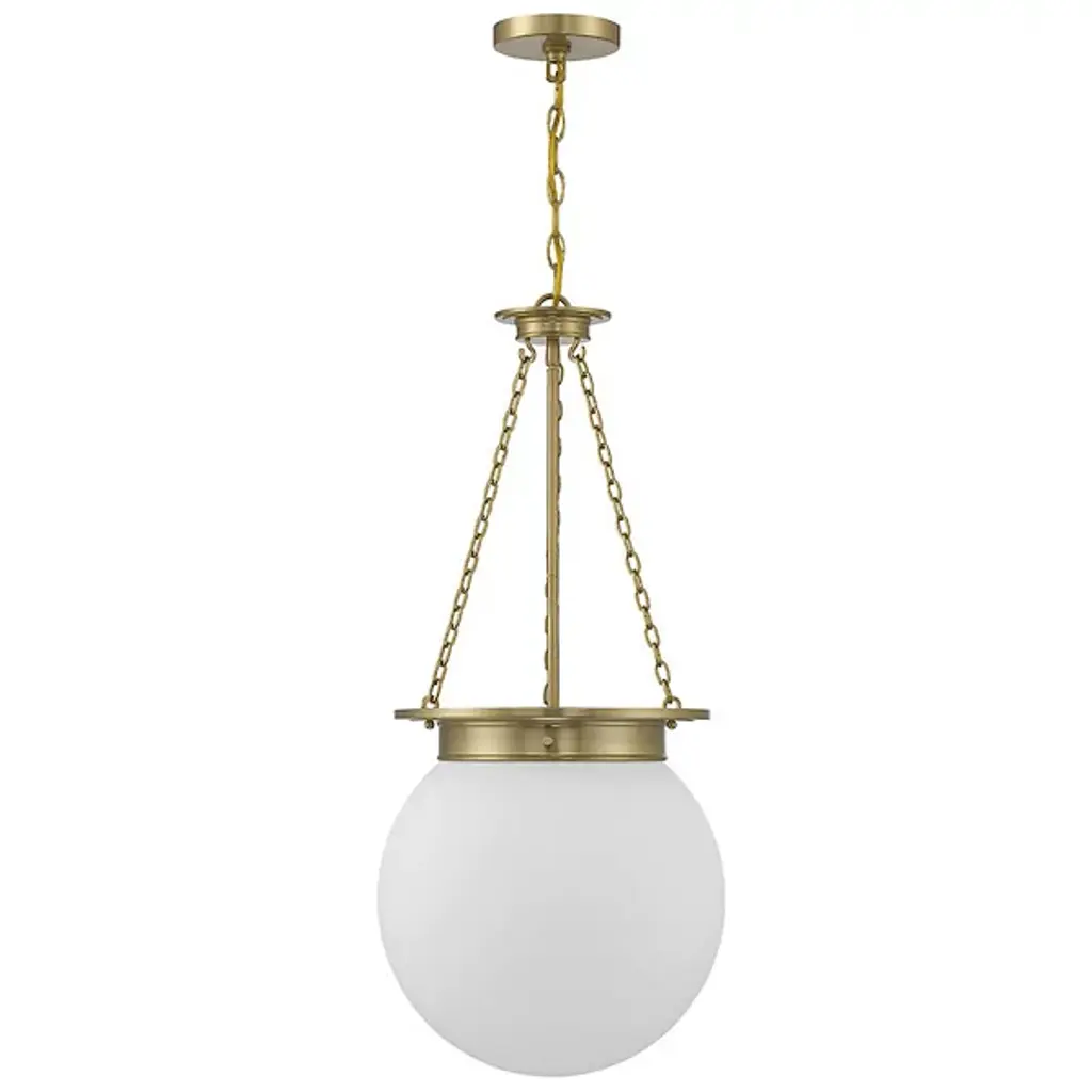 Grace your space with the modern-vintage fusion of the Manor Pendant from Savoy House. This classically inspired fixture proves traditional designs still shine, giving your décor an elevated touch or keeping it elegantly understated and featuring a smooth round opal glass orb shade suspended from an understated metal ring. Fine chain accents add a touch of flair, while the clean-lined metal framework provides a canvas for the pendant's focal point—that glowing glass globe. With its interplay of modern and vintage vibes, the pendant shines, bringing a luminous grace overhead.