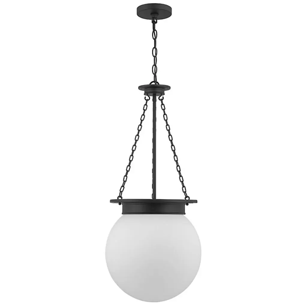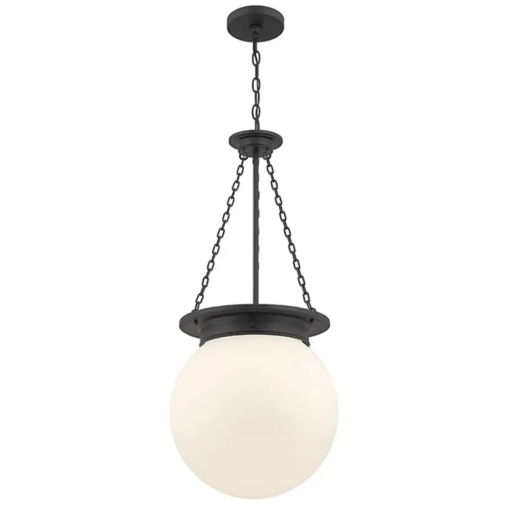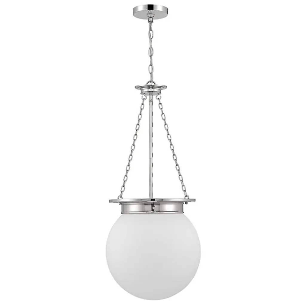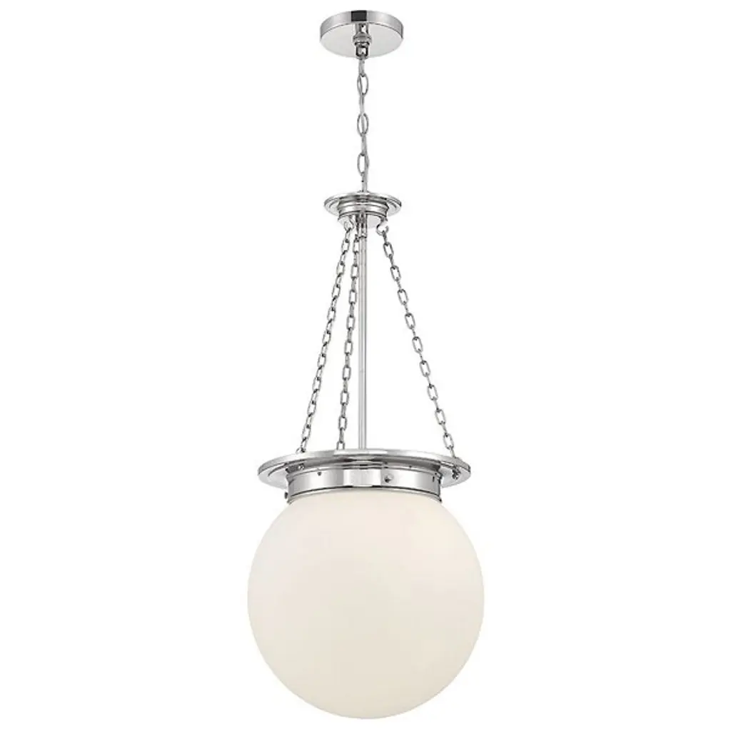 Grace your space with the modern-vintage fusion of the Manor Pendant from Savoy House. This classically inspired fixture proves traditional designs still shine, giving your décor an elevated touch or keeping it elegantly understated and featuring a smooth round opal glass orb shade suspended from an understated metal ring. Fine chain accents add a touch of flair, while the clean-lined metal framework provides a canvas for the pendant's focal point—that glowing glass globe. With its interplay of modern and vintage vibes, the pendant shines, bringing a luminous grace overhead.