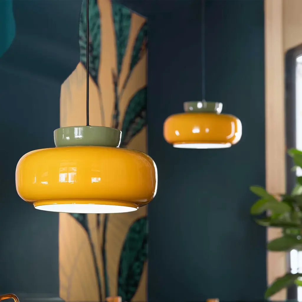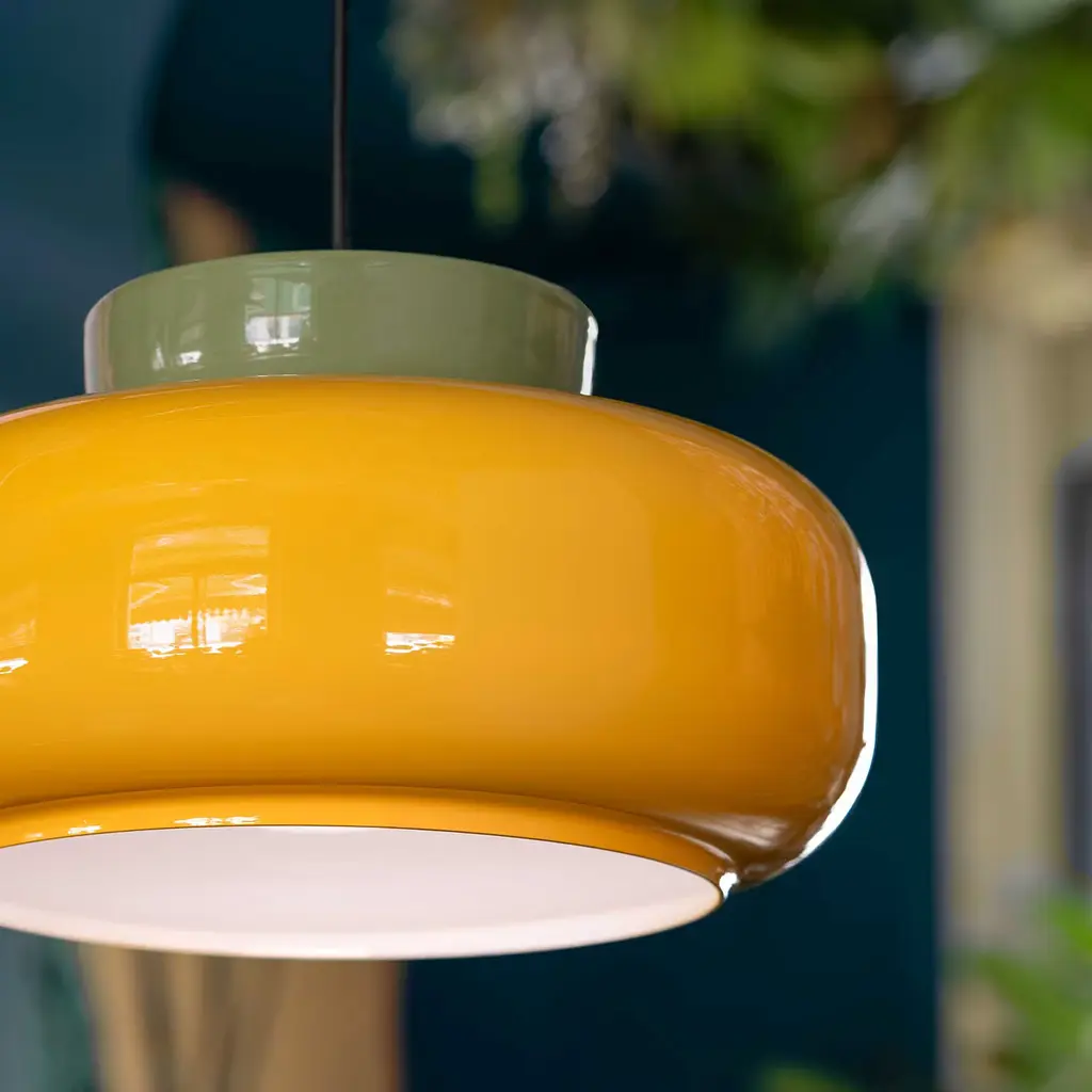 A pendant boasting a 37 cm diameter, adorned with painted glass for a captivating visual effect. This luminaire combines a generous size with artistic detailing, creating a statement piece that not only illuminates but also enhances the aesthetic appeal of its surroundings.