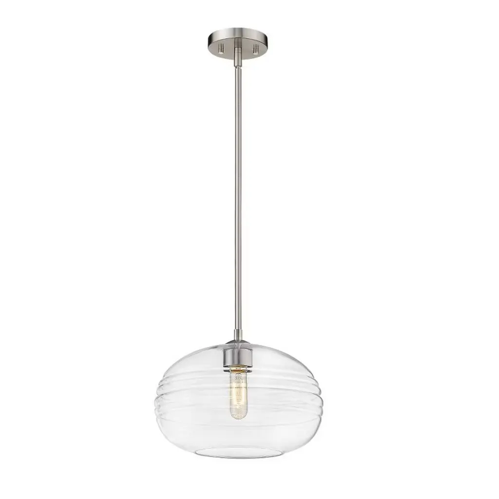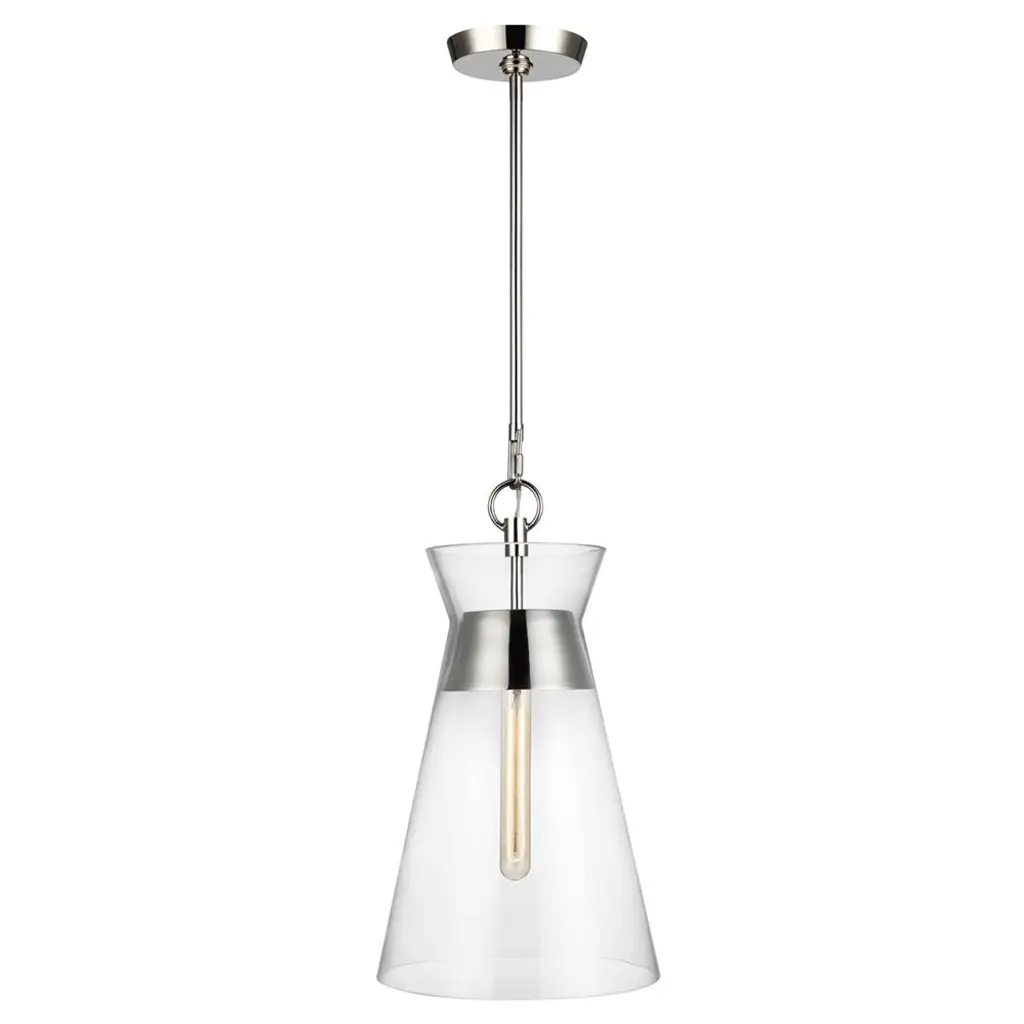 Open, elegant, and airy, the Marcel 1-Light Pendant from Alora Mood adds a comfortable appeal to its surroundings. A slender down rod holds a single lamp below. The fixture is then embellished by its intricate shade, pairing a steel ring accent with a teardrop form of clear glass. This curvy glass shade mellows direct glare and helps dish out an even warmth that sparkles subtly.