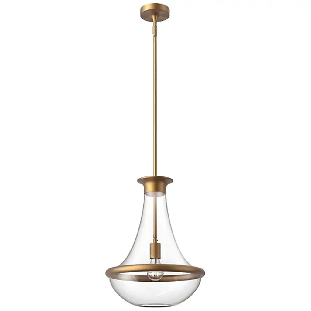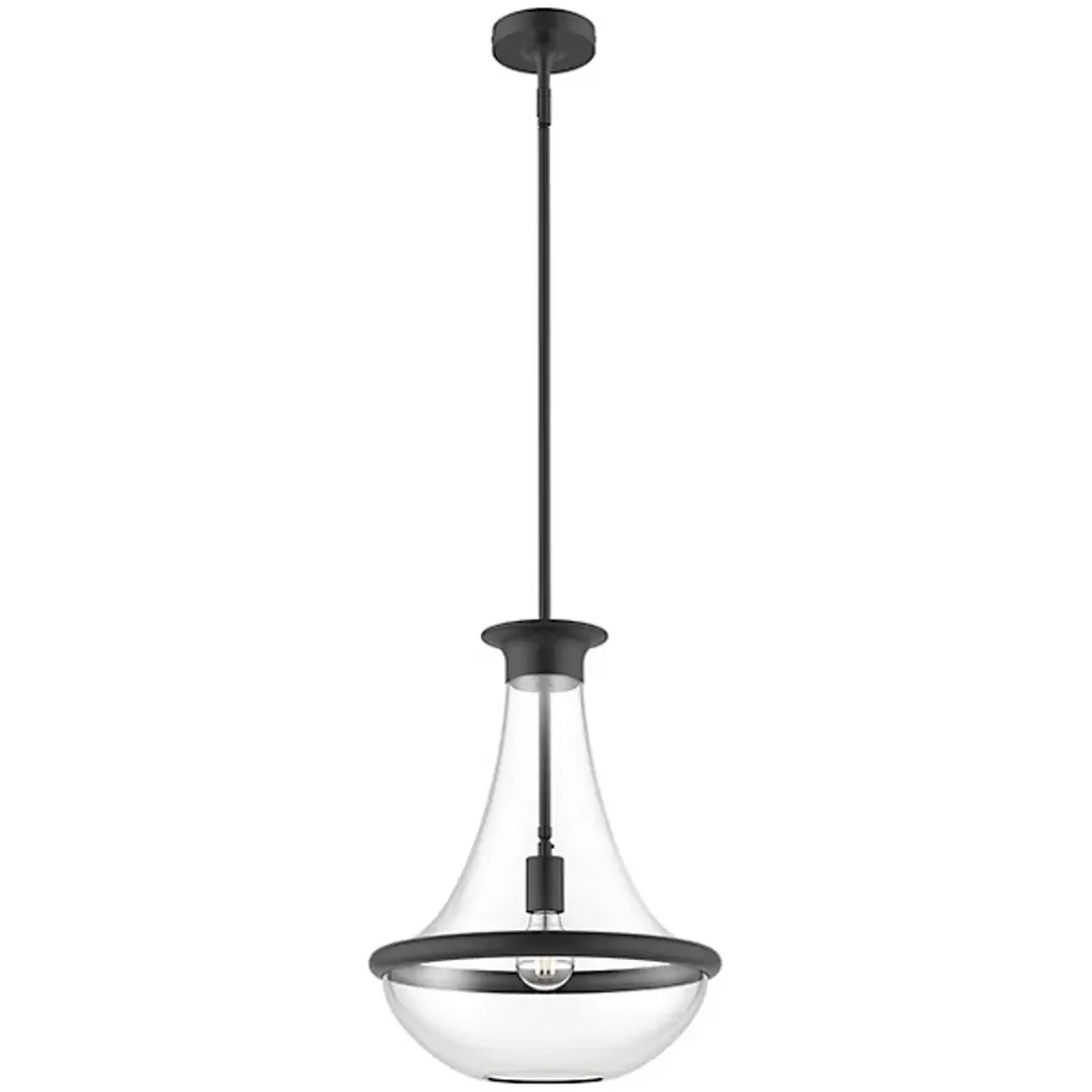 Open, elegant, and airy, the Marcel 1-Light Pendant from Alora Mood adds a comfortable appeal to its surroundings. A slender down rod holds a single lamp below. The fixture is then embellished by its intricate shade, pairing a steel ring accent with a teardrop form of clear glass. This curvy glass shade mellows direct glare and helps dish out an even warmth that sparkles subtly.