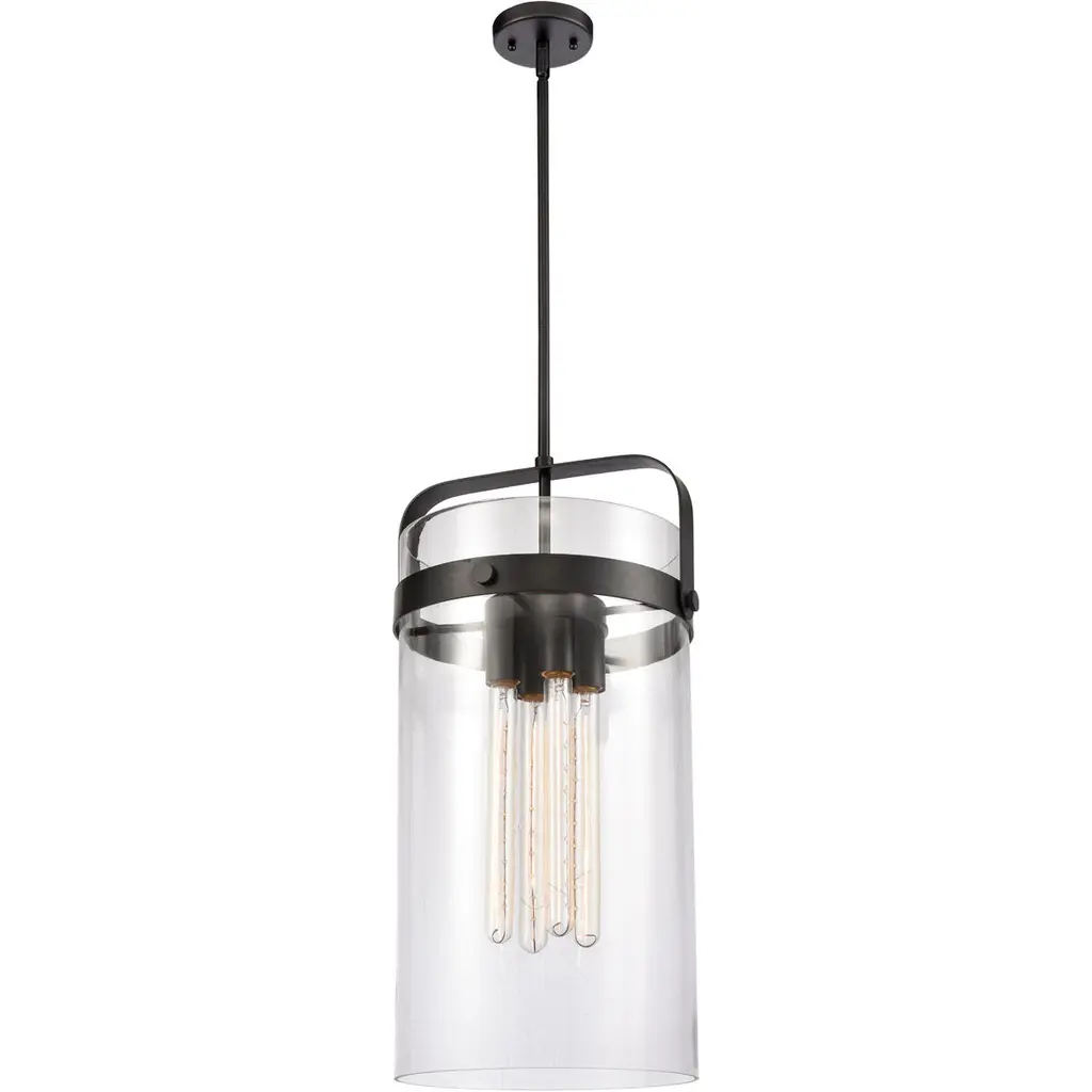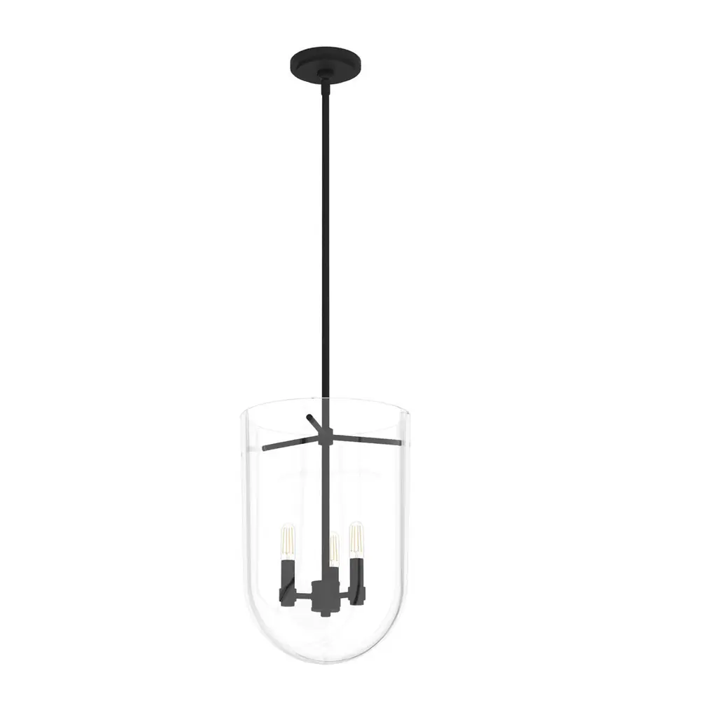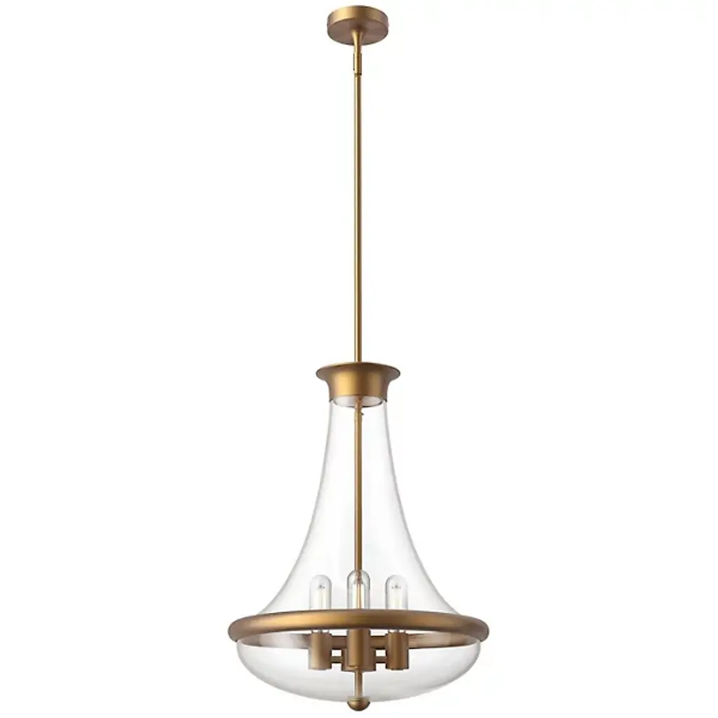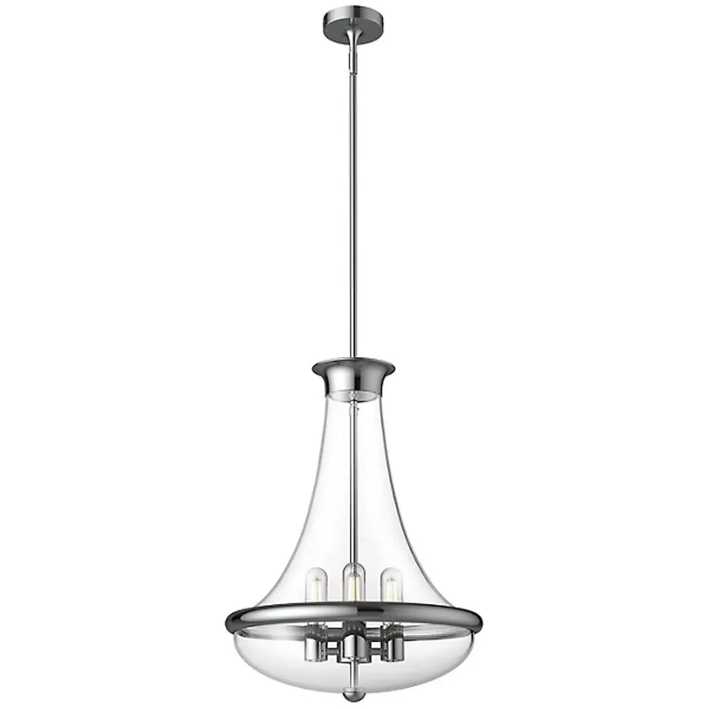 The Marcel 3-Light Pendant from Alora Mood presents an inspired retro look well-suited to high-ceilinged, open spaces. A long, slender downrod threads through a flared steel cap and a clear glass shade. This shade eases glare from the lamping. An array of upright single socket lamping extends from the center. An elegant ring accent encircles the teardrop shape of the shade. This shade puts the lamping on full display while the contrasting metal and glass elements draw the eye.