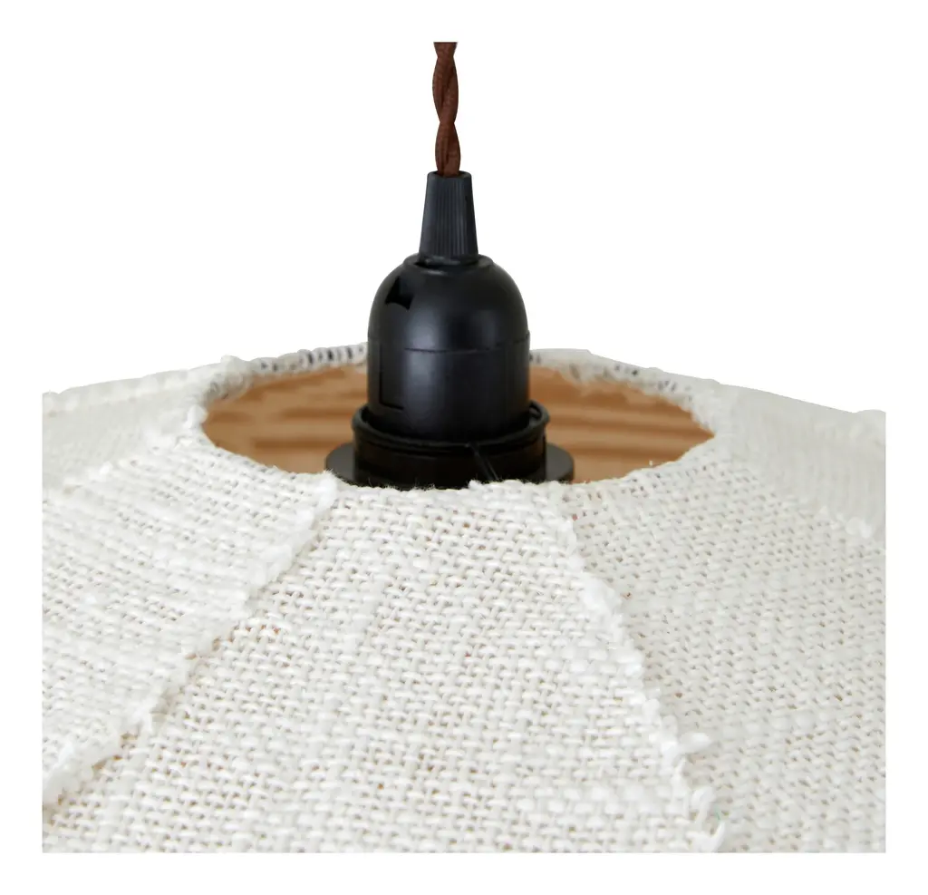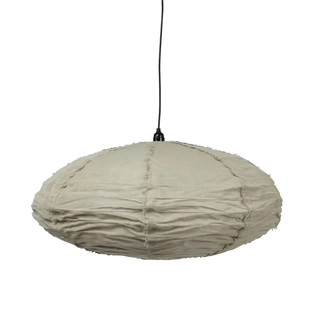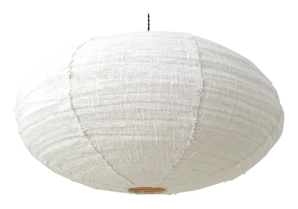 Our Maren Kapok Pendant is simplicity at its finest. This slouchy, oval-shaped lantern is crafted from natural Kapok fibers made from the seed pods of tropical Kapok trees, which casts a soft, ambient glow when illuminated from within. We’ve finished it with a twisted brown fabric cord, which allows you to adjust Maren’s drop from the ceiling. The perfect addition to any casual-modern space, we love our Maren Kapok Pendant brightening up a relaxed living room, as a dreamy addition to a minimal master bedroom or hung in multiples at varying heights over the dining room table. •handmade kapok fibers •twisted brown cloth cord •black-finished metal canopy•hardwire •requires 100W max/type A bulb Dimensions •31.5" diameter x 19.25"H•cord: 8' long•canopy: 4.75" diameter x 1"H Care Instructions Due to its handmade nature and natural kapok material, wrinkles should be expected. Since this item is packaged and shipped flat, wrinkles may initially be more noticeable but will unwrinkle and take shape within 48 hours of assembly. Wrinkles can be further eliminated by steaming.