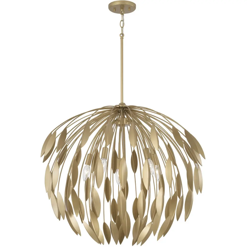 Invite glamour to any space with the Margeaux Medium Pendant. Layers of cascading leaves create decadent dimension, while the Buffed Gold finish evokes a subtle shimmer from every angle.