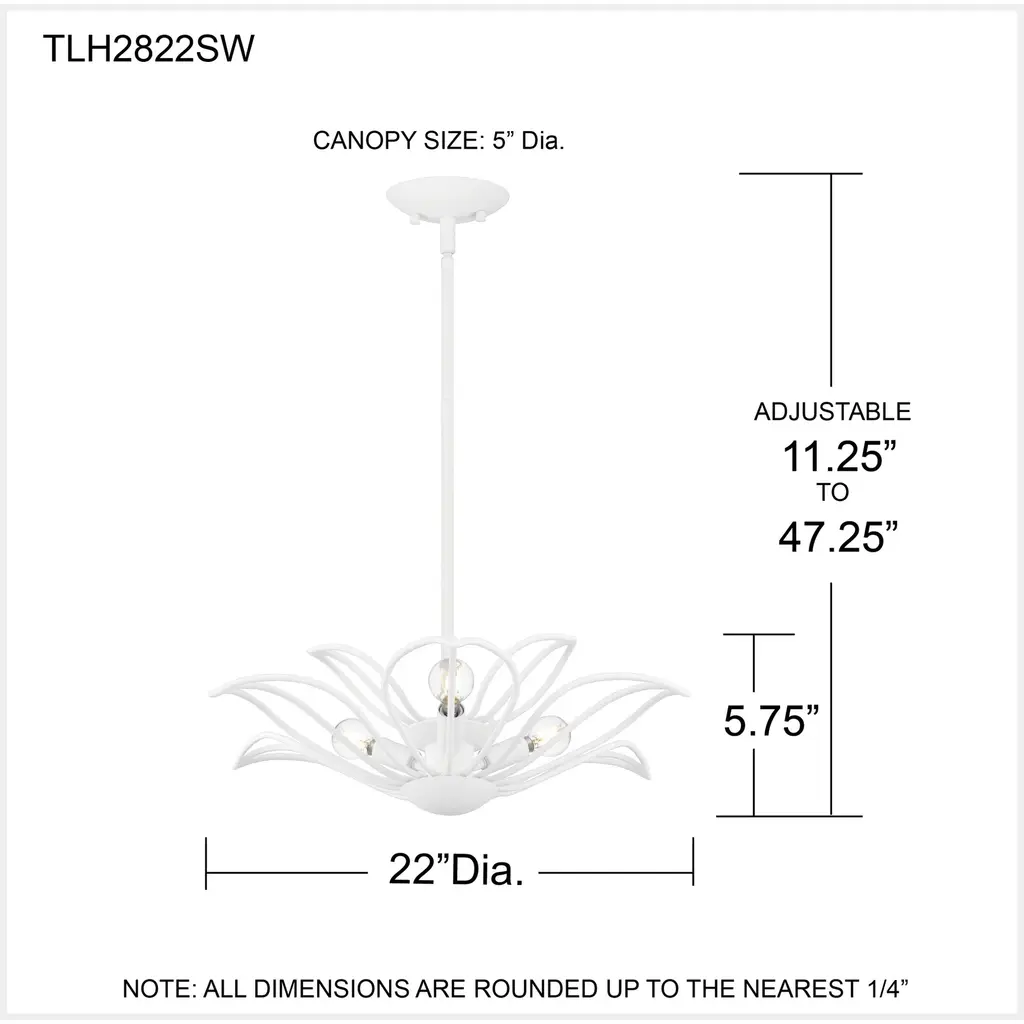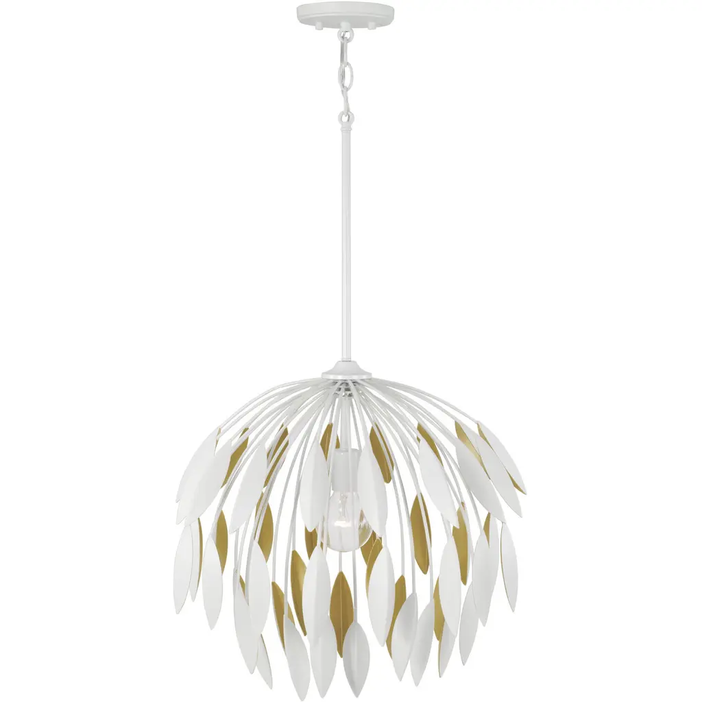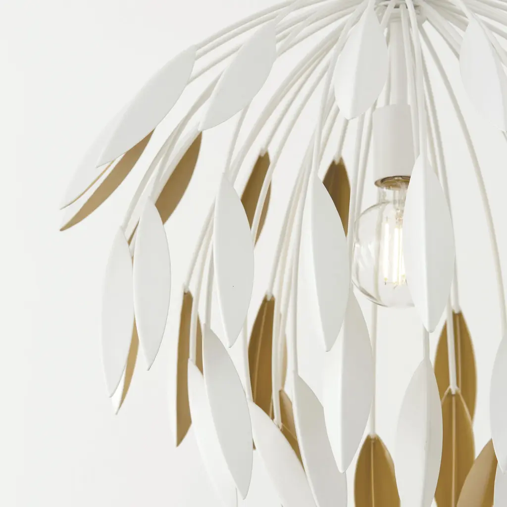 Invite glamour to any space with the Margeaux Medium Pendant. Layers of cascading leaves create decadent dimension, while the Matte White finish with Buffed Gold interior invites glimmering intrigue from every angle.
